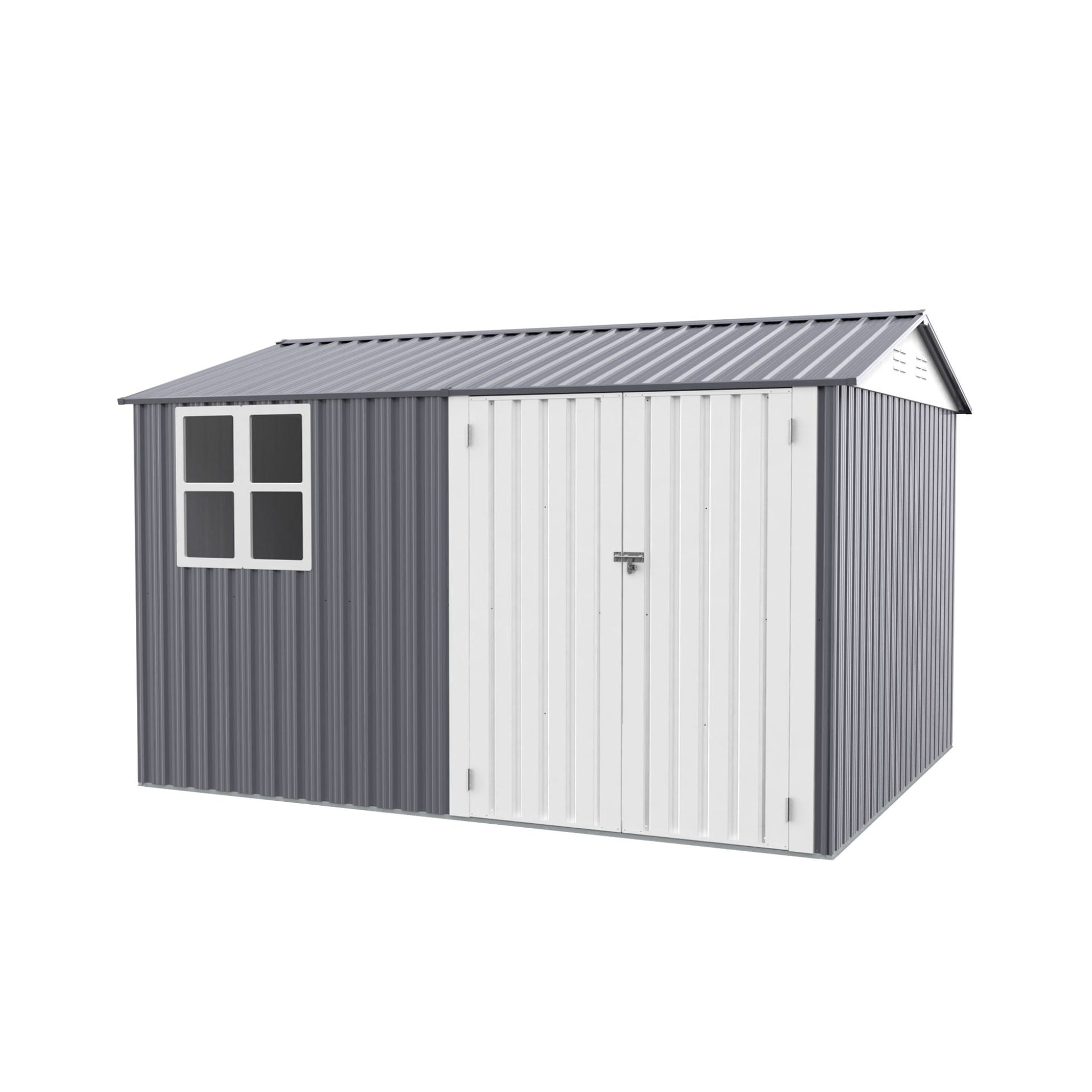 [08X10FT] Alora Outdoor Garden Tool Shed With Thickened Galvanized Steel, Sloped Roof, Vents And Double Lockable Doors (SAK66582)