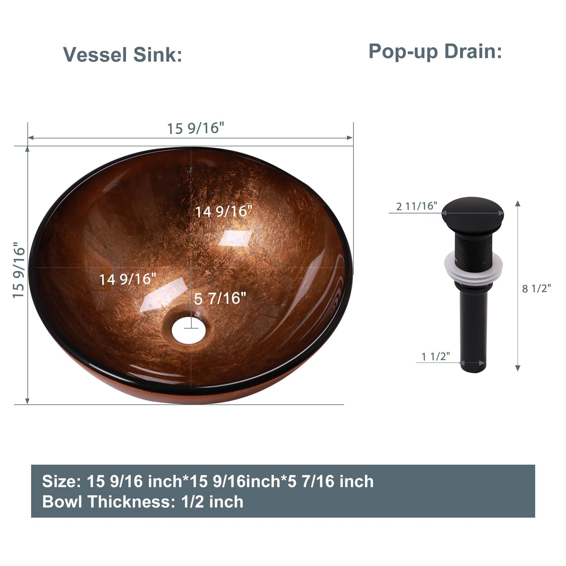 Product Name: Bathroom Artistic Tempered Glass Vessel Bathroom Sink with Pop-up Drain, Above Counter Single Bowl Round Bathroom Basin is Brown