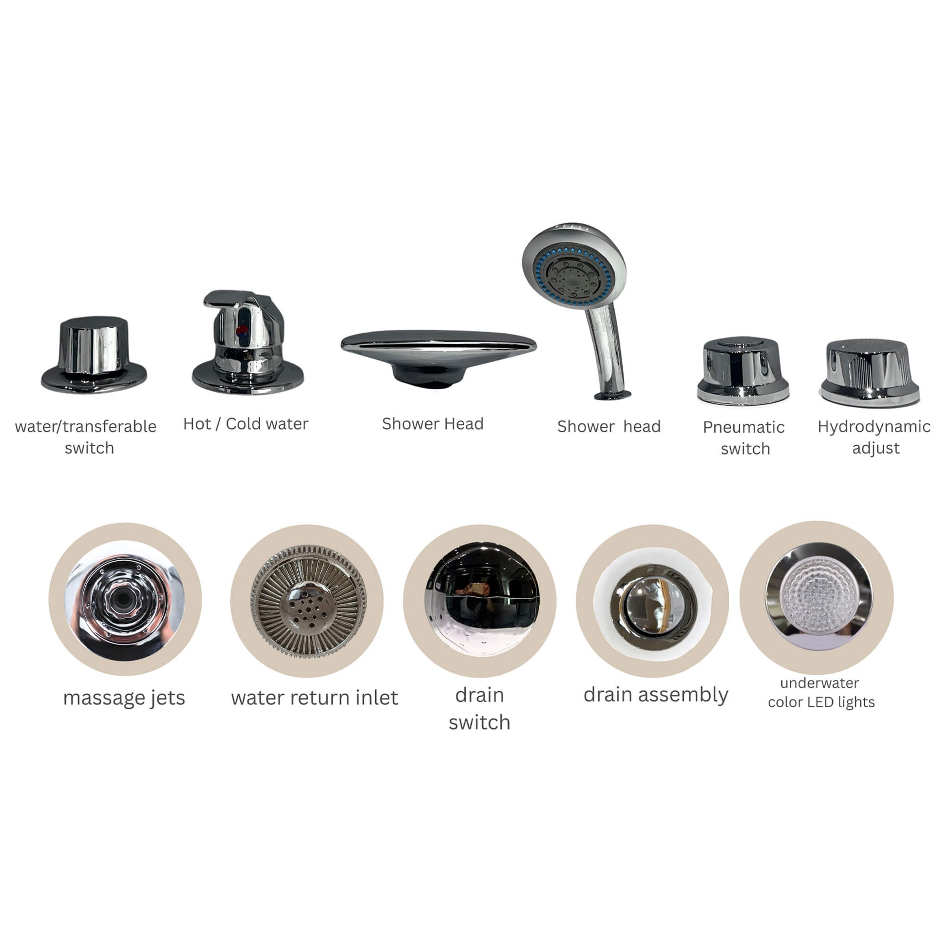 - Equipped with 6 powerful jets, the bathtub provides a luxurious and therapeutic whirlpool experience, perfect for ultimate relaxation and rejuvenation.