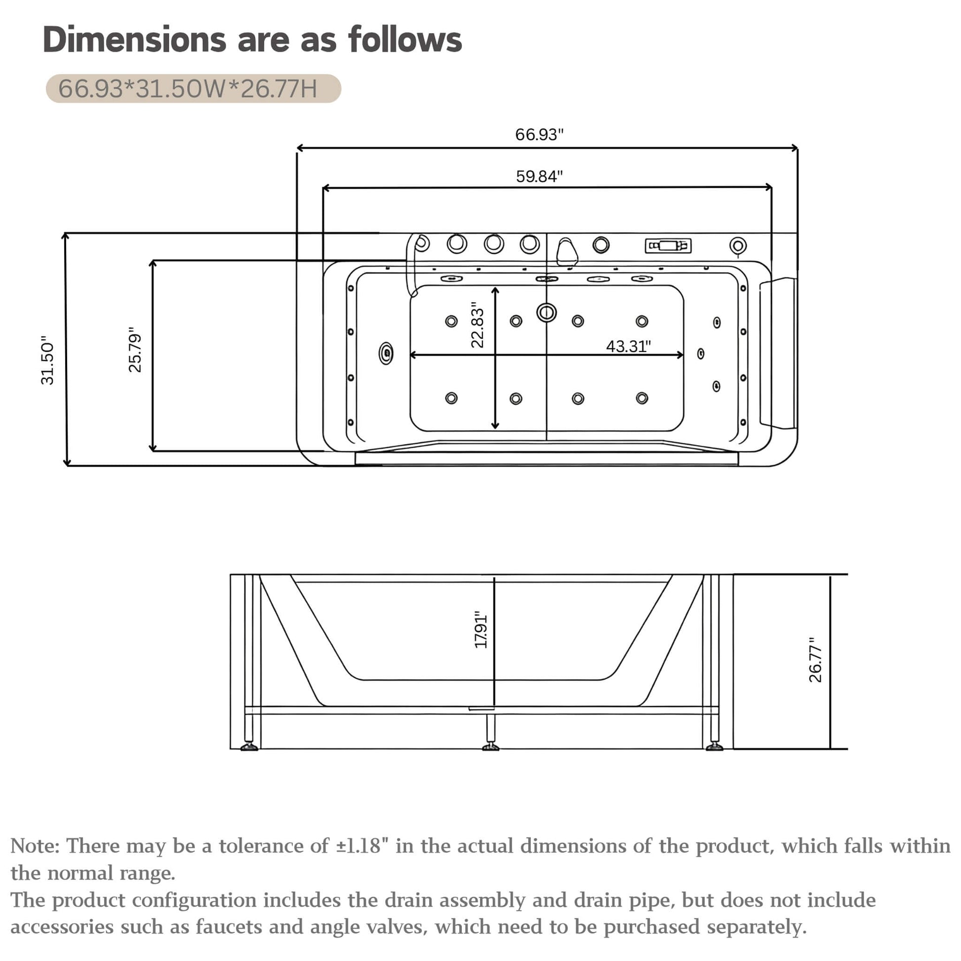 BUY THIS LUXURY 67-INCH 7-JETS HYDROTHERAPY WHIRLPOOL BATHTUB AT SAKSBY WHOLESALE & SAVE! WHY PAY MORE ELSEWHERE!