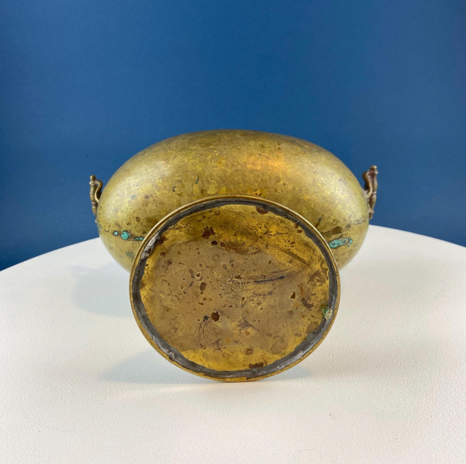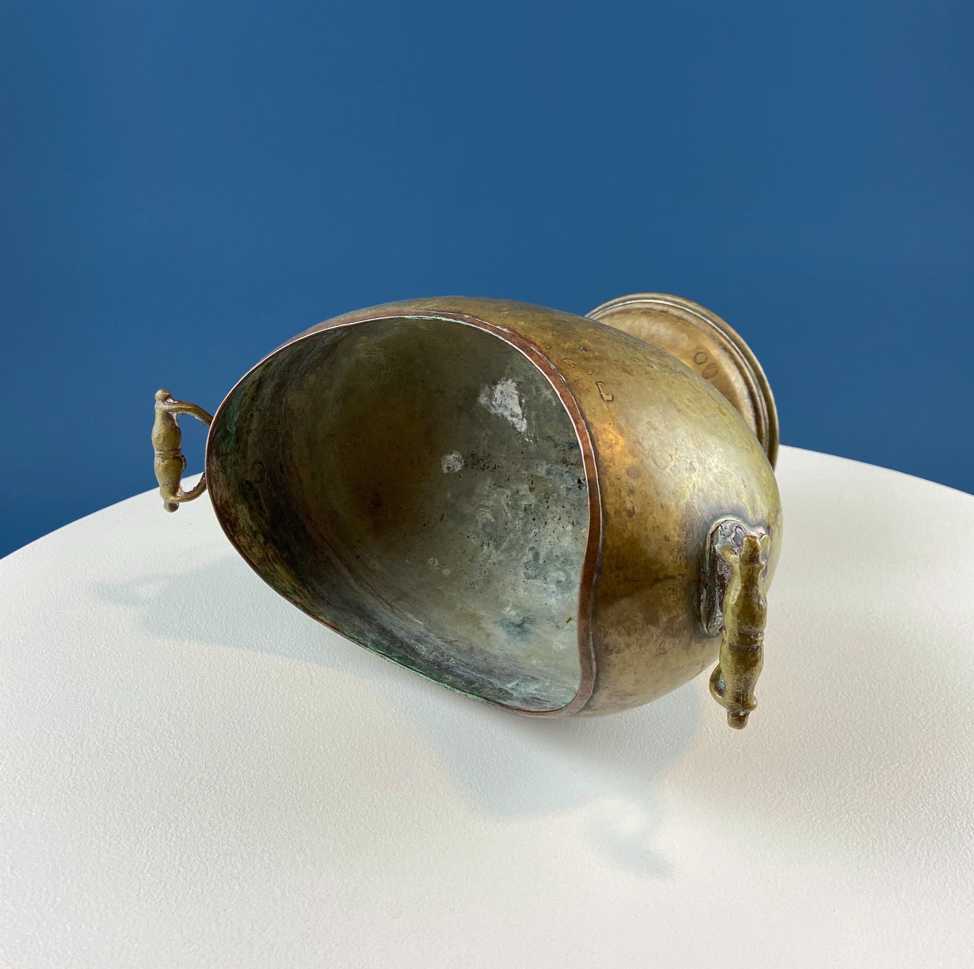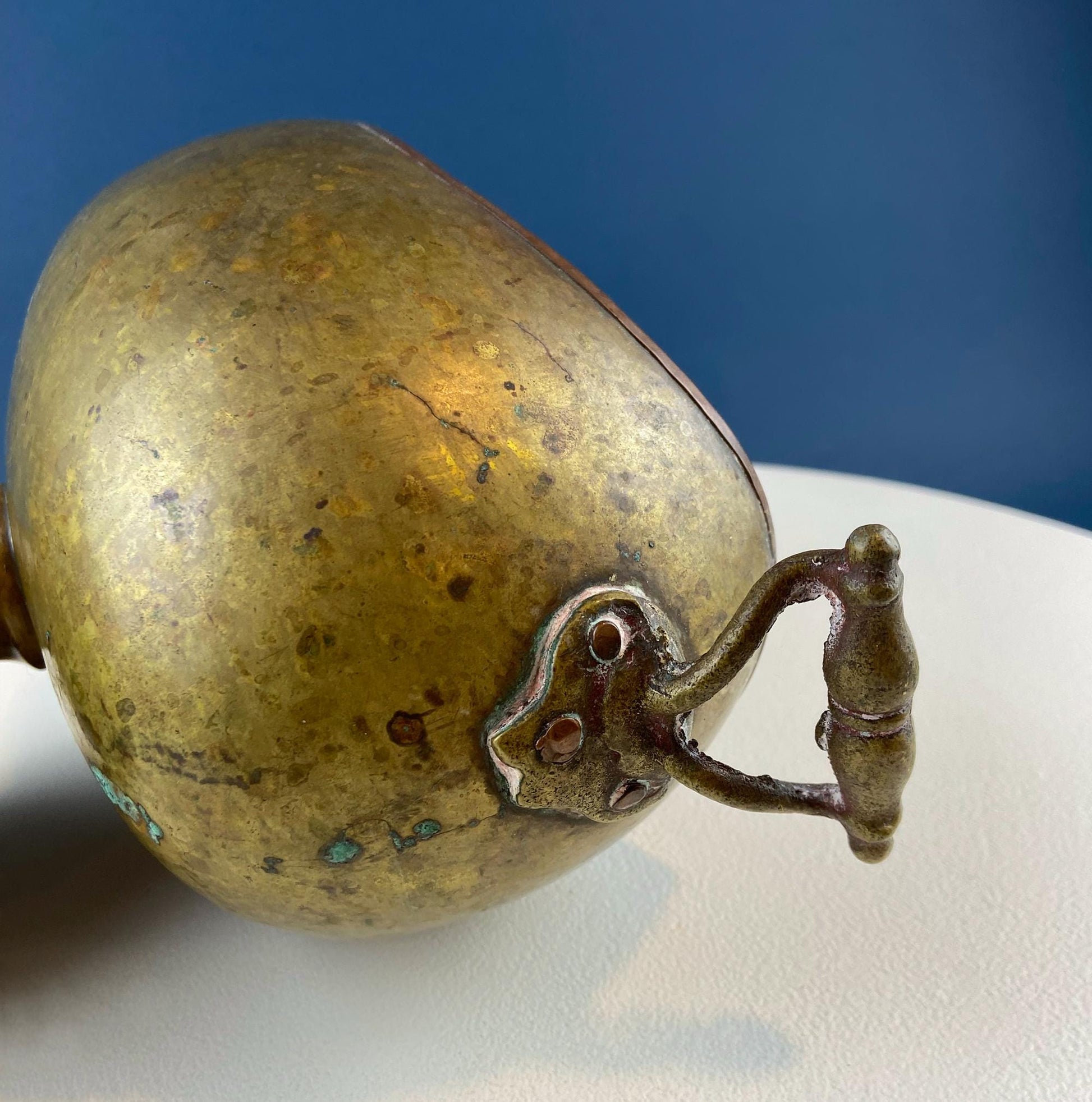 Antique Hand Hammered Brass Jardiniere Footed Flower Pot. 19th Century Russian Imperial Brass & Copper Handled Pedestal Vase. Unusual Silhouette. Herb Growing Container. Window Sill Garden. Dining Room Table Decor. Rustic Home Decor. Modern Country. Gift for Him or Her.