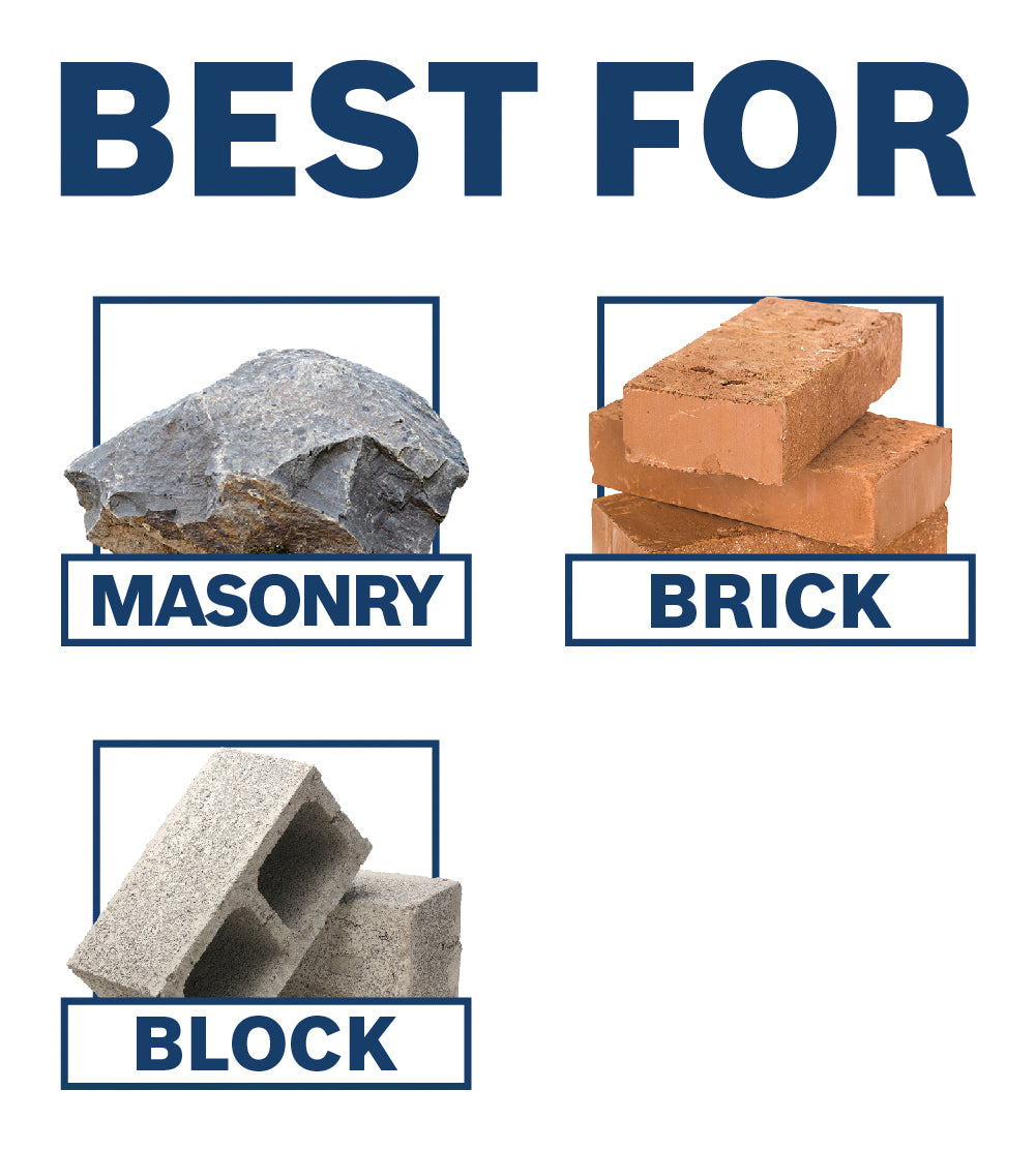 - Masonry applications – engineered for masonry, block and brick
