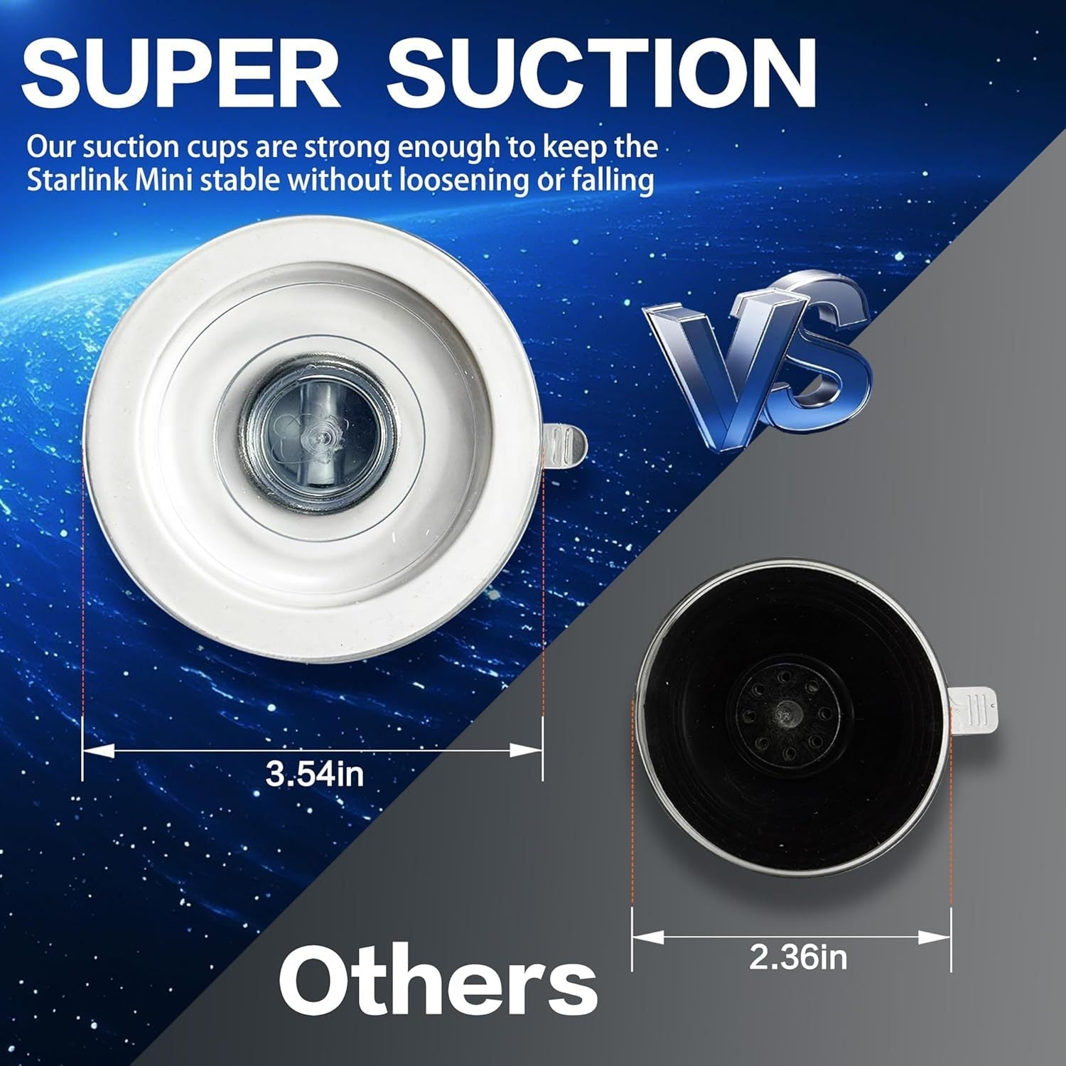 - Super Strong Suction: Engineered with a large, 3.54-inch (9 cm) diameter suction cup, significantly larger than typical 2.36-inch alternatives. This "SUPER SUCTION" design ensures exceptional stability, keeping your Starlink Mini firmly in place without loosening or falling, even in challenging conditions.