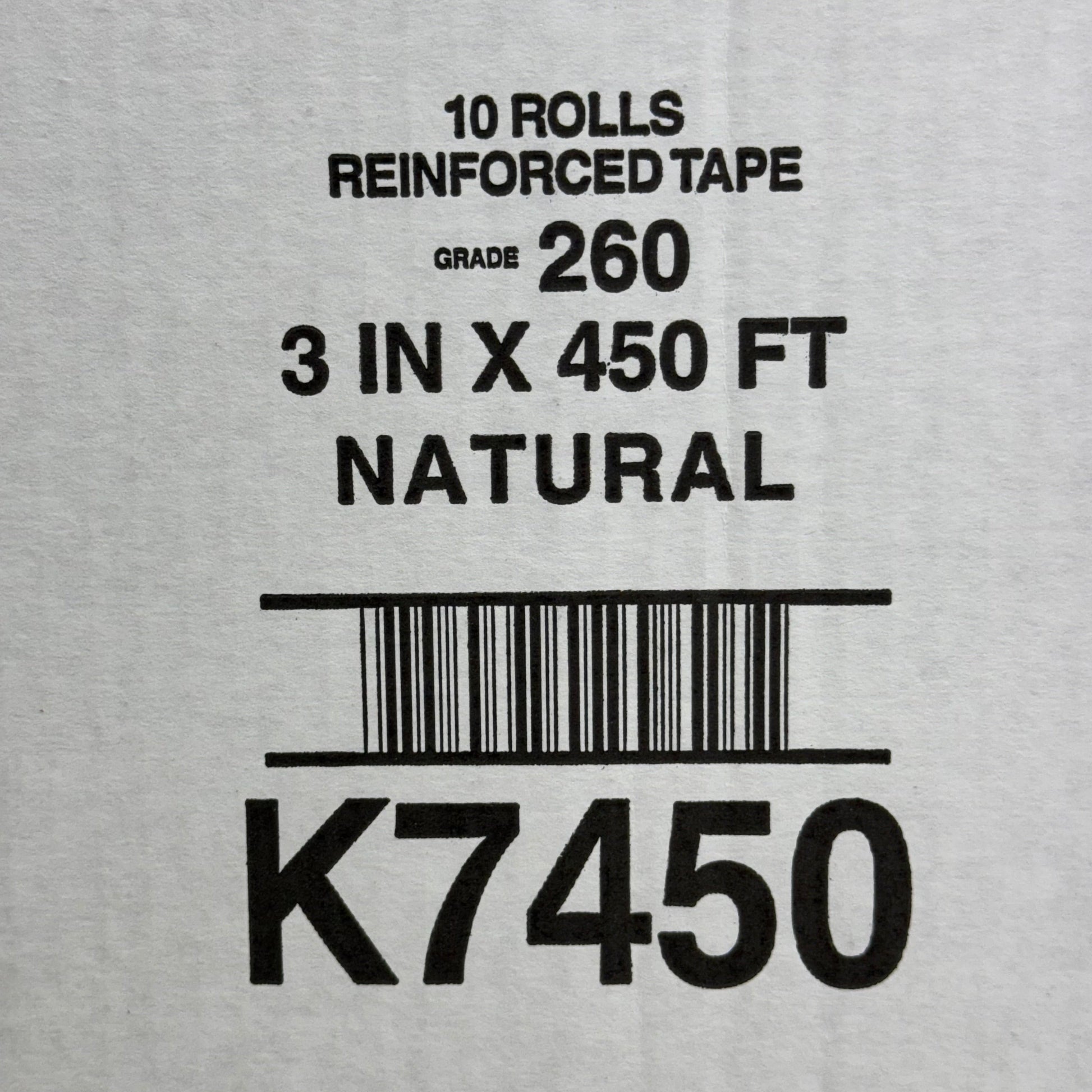 CENTRAL (10 Rolls) Reinforced Tape Sz 3" x 450' L Grade 260, Brown K7450