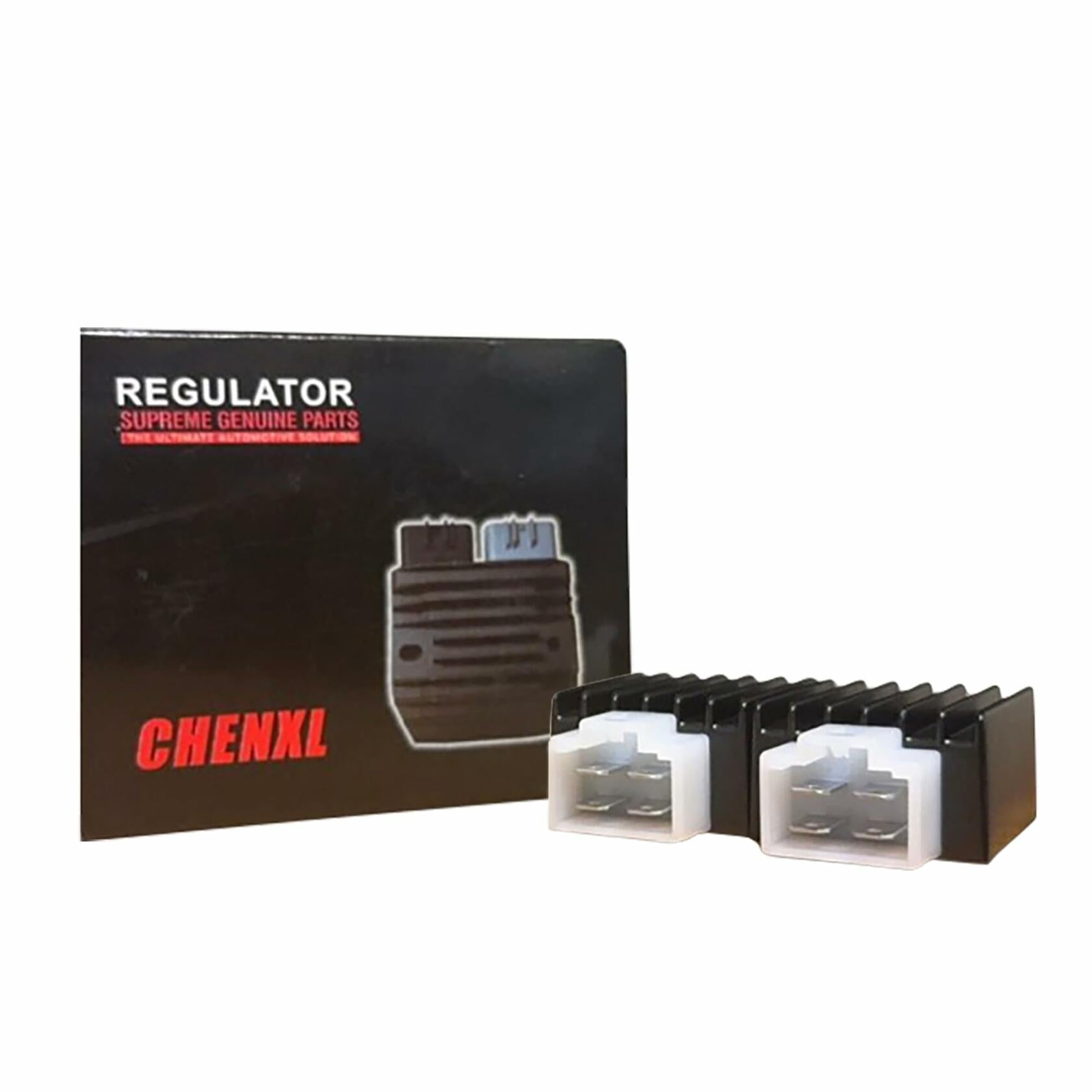 for Tao Tao ATA-110 DATA135 125 Coolster 110CC ATV 3050B 3050B-2 3050C 3050D Roketa Kazuma Meerkat 50cc Falcon 90cc ATV Quad Howhit 150cc Go Kart Wide Compatibility: Suitable for most scooters, mopeds, ATVs, go-karts, buggies, motorcycles, golf carts, and small lawn mowers with single-phase magneto engines (0-50W AC) and GY6 motors (50cc to 120cc). It can also be used on engines up to 150cc or 200cc if the magneto is single-phase HALF WAVE 0-50W. Compatible with brands like SunL, Kazuma, TaoTao, Roketa, JCL, Lance, Baja, Coolster, TGB, TNG, Tank, Redcat, Giovanni, Wildfire, Xtreme, and Seaseng. Superior Materials and Construction: Built with top-quality materials, the Chenxl Half-Wave Regulator operates effectively in temperatures ranging from -30°C to 70°C (-22°F to 158°F). It features a super lightweight design and offers corrosion resistance, excellent thermal conductivity, and durability for years of reliable performance. The regulator uses premium connectors and high-grade aluminum casing, ensuring top-notch performance and durability. It also provides insulating protection, effective sealing, vibration resistance, drop resistance, and is both dustproof and waterproof. The encapsulation is done using advanced potting technology, ensuring superior protection and longevity. Advantages of 12V 4-Pin Half-Wave Dual Silicon Voltage Regulator: High Durability: The use of dual silicon components ensures enhanced durability and longevity, providing a reliable performance over time. Better Efficiency: Dual silicon technology offers improved efficiency and thermal management, leading to better overall performance. Simplicity and Cost-Effectiveness: Half-wave rectification design simplifies the circuit, reducing the number of components and overall cost while providing effective voltage regulation. Lower Heat Generation: The half-wave design results in lower heat dissipation, which helps in maintaining a cooler operation and prolonging the life of the regulator. Improved Power Conversion: Utilizes both halves of the AC cycle more effectively than single-wave rectifiers, ensuring stable and efficient power conversion. Precise Parameters: a. Voltage when the headlight is on and stable: 13.3V ± 1V(4000r/min; K4 closed [headlight on and stable], K3 open [battery not connected]) b. Voltage when the headlight is off: 14.5V ± 1V(4000r/min; K3 closed [battery connected], K4 open [headlight off]) c. When both the headlight and battery are connected:Battery voltage: 14.5V ± 0.5V Headlight voltage: 13.3V ± 0.5V (4000r/min; K3 closed [battery connected], K4 closed [headlight on and stable]) Conforms to: QC/T680-2002 standards. Customer Satisfaction Guarantee: We offer a 100% refund if you are not satisfied. As a direct manufacturer, there are no middlemen, ensuring the best price for you. Our engineers are available 24/7 to assist you. This product is an OEM part originally designed for scooter manufacturers in South America, Southeast Asia, and Africa, specifically for 50-110cc models. Crafted by senior engineers, assembled using high-speed placement machines, welded on a Yamaha high-temperature intelligent production line, and inspected with high-resolution optical AOI instruments, we guarantee its quality.