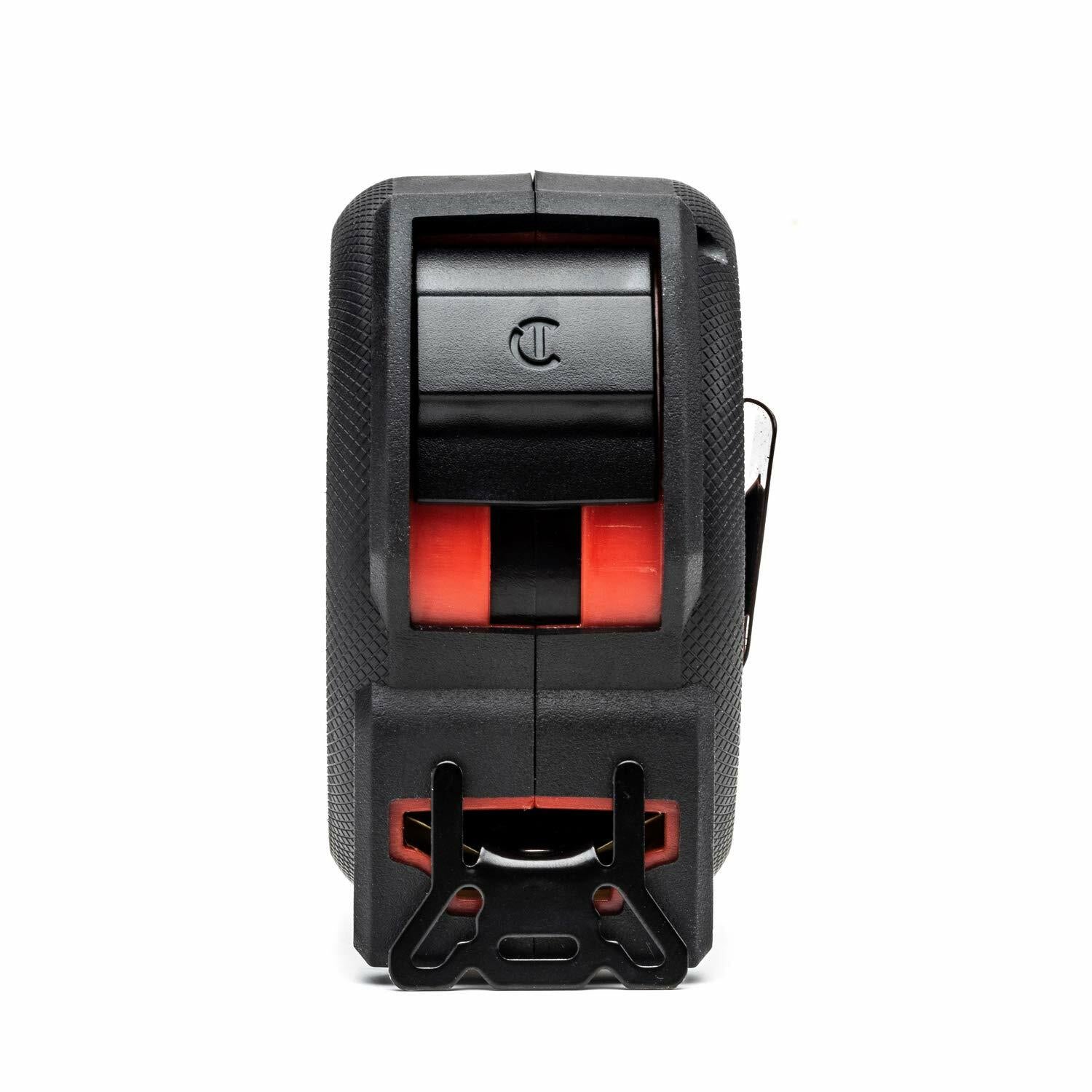 - Anti-pinch, finger tip control feature for increased control when retracting the tape.