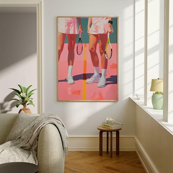 Vintage Sport Paint by Numbers Kit for Adults,DIY Acrylic Watercolor Oil Painting by Number On Canvas Without Frame,Retro Tennis Paint for Home Wall Decor 16x20inch