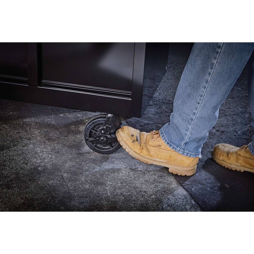 This 52-inch wide 9-Drawer Rolling Tool Cabinet is constructed of double-wall steel for strength and durability. It has nine 100-pound load capacity drawers with soft close latching for smooth and quiet operation. Conveniently charge your power tools, batteries, and electronics from the side of the cabinet. It also has a heavy-duty keyed internal locking system to safeguard tools. The cabinet has a load rating of 1,500 pounds with reinforced mounting channels, and four 5-inch x 2-inch casters, two of which lock and swivel. A full-grip tubular side handle with a comfortable black overmold is included for ease of mobility. Also included are nine DEWALT embossed drawer liners and one DEWALT embossed top mat to help protect the cabinet surface. Recommended with this unit is our 700 Series 52-inch wide 8-Drawer Tool Chest (DWST25181), sold separately. Look no further than our Metal Tool Storage line for your tool storage and organization needs. Choose from a variety of sizes in top tool chests and rolling tool cabinets, all of which are made of 18-20 gauge steel. All units have an 18-inch depth to fit our mechanic tools sets, and other hand tools and accessories.