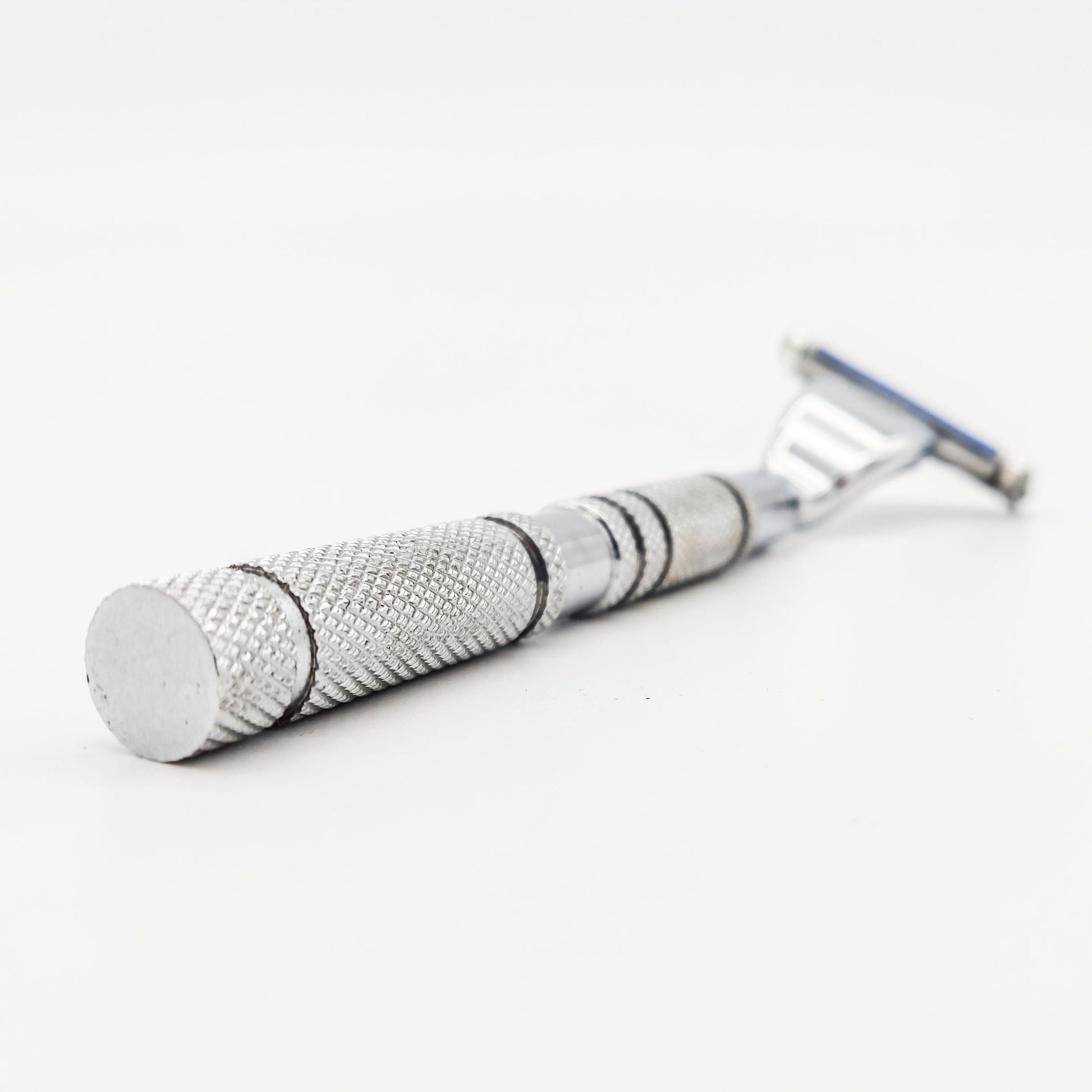 Properly weighted and balanced handle helps reduce pressure placed on the skin during shaving.