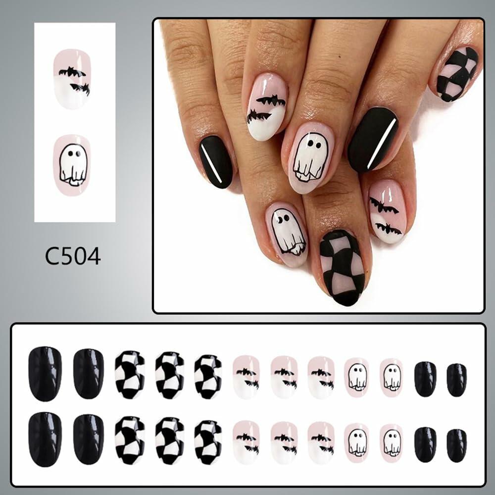 - Material: Halloween fake nails with pumpkin ghost bat press on nails designs is made of high-quality ABS environmental friendly acrylic material. It is non-toxic, odorless, durable and not easy to fade. It is harmless to your body and nails, and provides you with a comfortable and wonderful experience