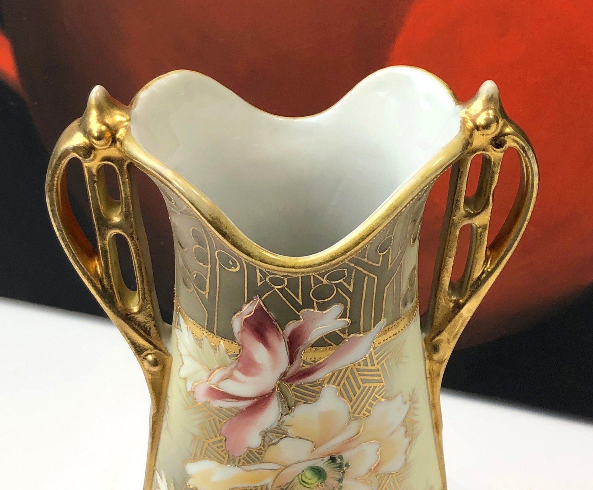 Hand Painted Art Nouveau Nippon Vase, Antique Japanese Gold Floral Urn