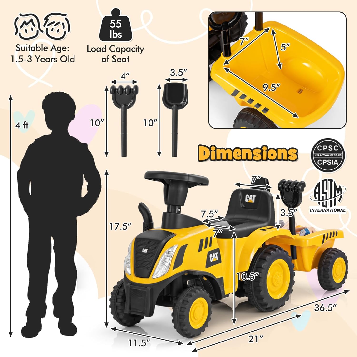 - 【Beach Tools Included】: The foot-to-floor sliding tractor boasts a beach rake and shovel, perfect gift for little builders aged 18-36 months old. These tools enhance sand play, fostering fine motor skills and creative construction. Conveniently, both tools can be stored securely on the storage bracket when not in use.