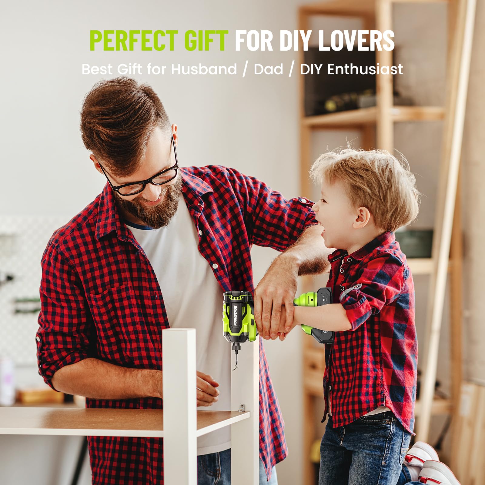 - 【2 x 21V Batteries 】– Includes two 2.0Ah rechargeable lithium-ion batteries with power indicators for extended runtime. Swap batteries easily to keep this Cordless Impact Driver running continuously—perfect for garage repairs, jobsite tasks, and household projects