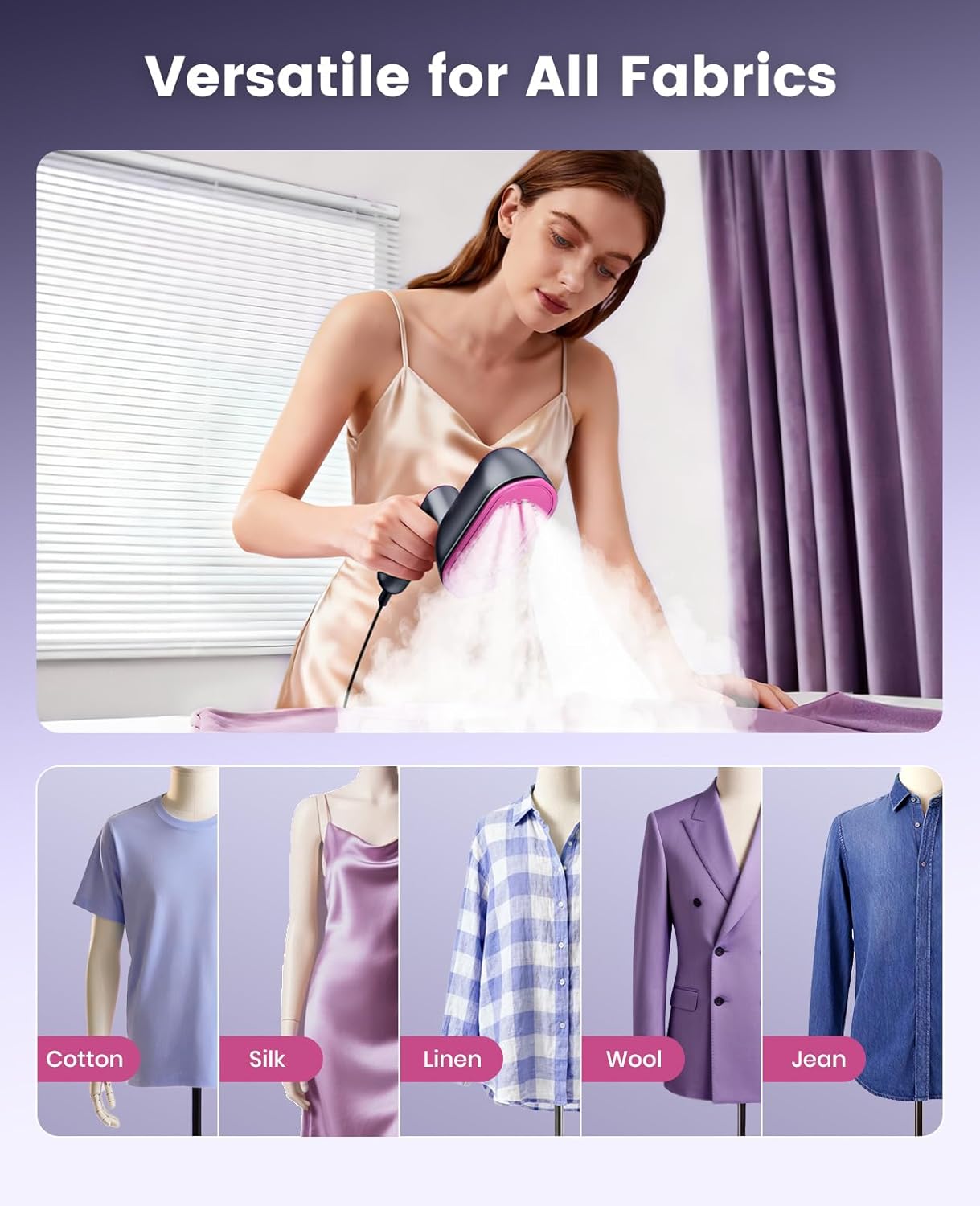- Reach Every Edage: A pointed tip glides into seams, collars, and corners to smooth creases on all kinds of fabrics. The garment steamer comes with a 7.8-ft extra-long power cord, you can move freely while steaming.