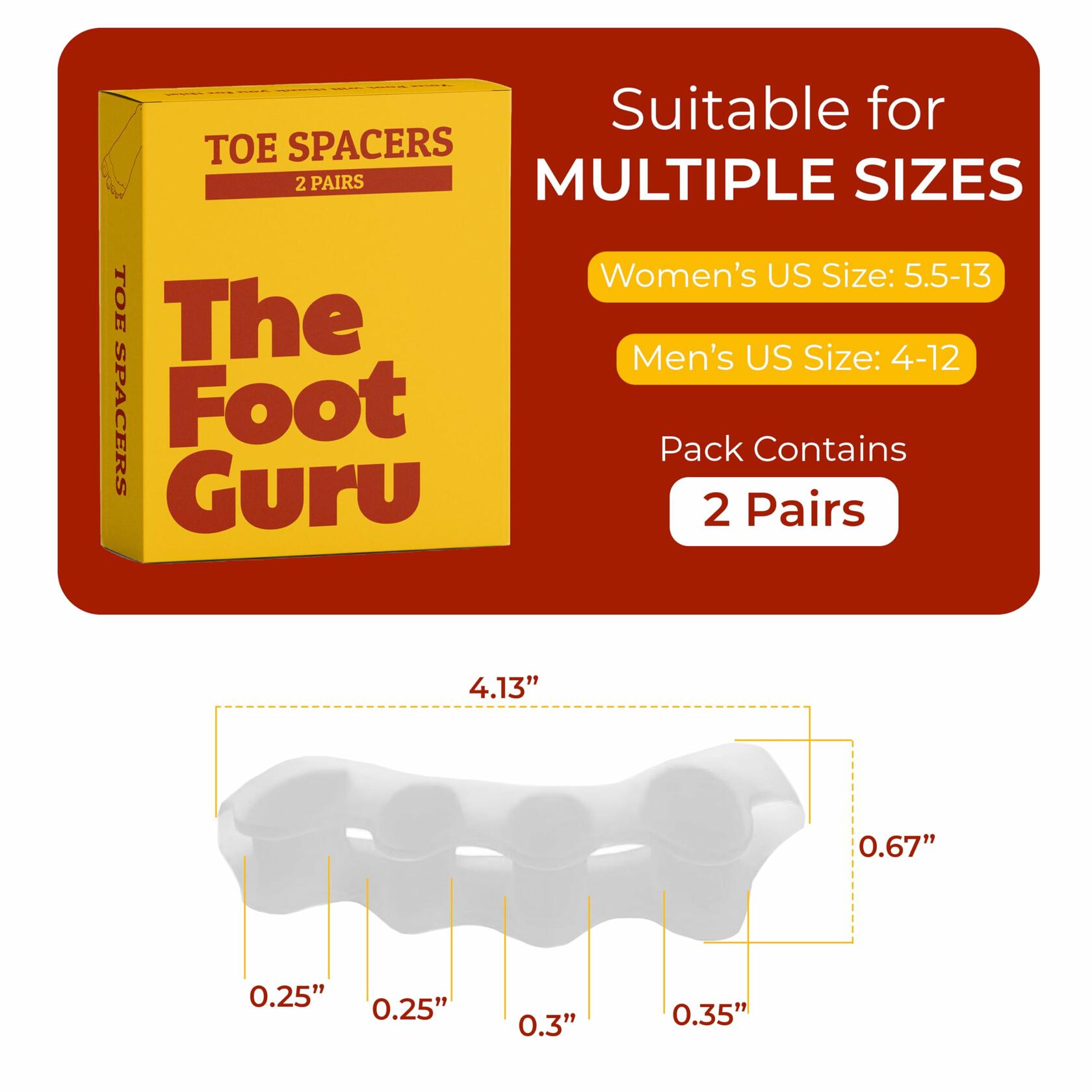 Relieve pain from overlapping, hammer toe, bunions, and Hallux Valgus with our medical-grade gel toe spacers. Our Toe spacers are designed to alleviate toe pain caused by overlapping toes, bunions, Hallux Valgus, and painful toe conditions such as turf toe. Simply place the toe separators between your toes to create a comfortable space, helping to realign and separate your toes for relief. Our toe spacers are made from medical-grade gel, which is soft, comfortable, and easy to clean. Simply wash with soap and water when necessary. The toe separators are reusable and provide long-lasting relief. By gently spreading your toes, our toe spacers can help to relieve pressure and reduce friction in your toes, providing relief. Our toe separators are ideal for athletes and active individuals who experience toe pain due to excessive training or activity. The toe spacers can also be used during pregnancy to relieve pressure and discomfort in the feet and yoga.