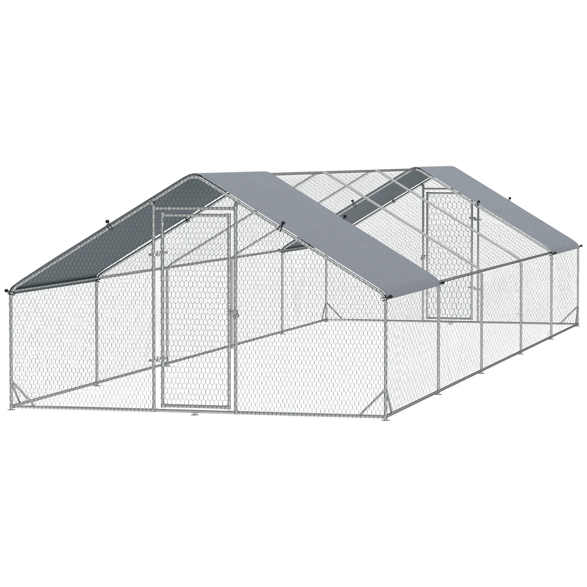 Embrace the tranquility of rural living with PawHut's metal chicken coop, designed for people yearning to reconnect with nature. This spacious and secure enclosure offers a perfect solution for those new to animal husbandry, providing ample room for chickens to roam freely while ensuring their safety. The protective roof shields them from rain and harsh sunlight, allowing them to enjoy the outdoors comfortably. With a secure locking system, you can rest easy knowing your feathered friends are safe, making your countryside retreat both fulfilling and effortless.