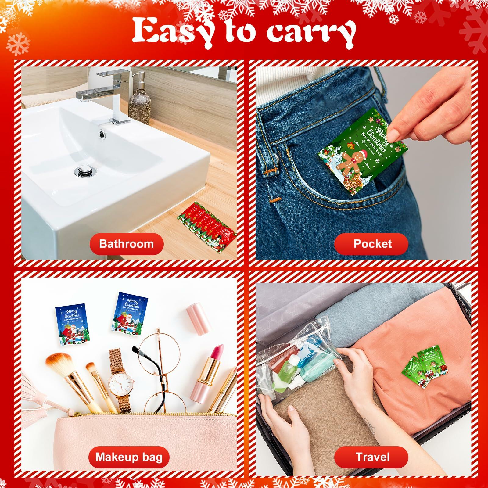 Features: Creative and practical gift idea: With the festive designs and practical function, these individual wrapped wipes can be ideal presents for your loved ones during Christmas. Whoever receives this thoughtful gift will appreciate your creative gesture. Convenience to use: Our individually wrapped make up remover wipes offer you the convenience. They are portable and hygienic, nice for travel or a quick cleanup. Plus, their single portable packaging reduces the worry of wipes drying out. Specifications: Material: non woven fabricColor: multicolorOpening size: approx. 4.3 x 5.9 inches/ 11 x 15 cmPackage includes: 100 x Christmas individual makeup remover wipesNotes: Manual measurement, please allow slight errors on size. The color may exist a slight difference due to different screen displays. Test whether there is any allergy on a small part of your skin before use. Please stop applying if there is any discomfort.FEATURES