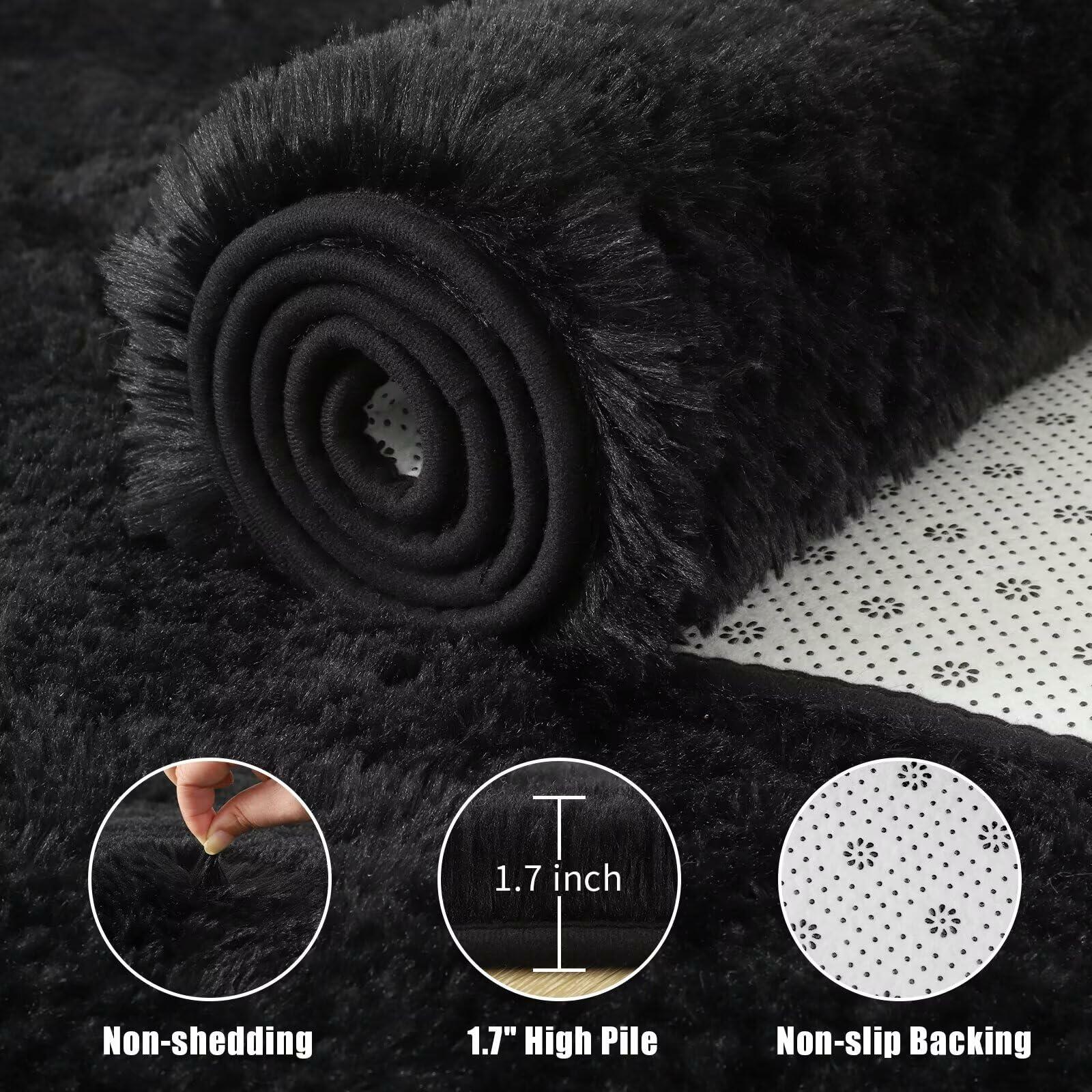 Macgace 6x9 Black Shag Area Rug Fluffy Plush Non-Slip Washable