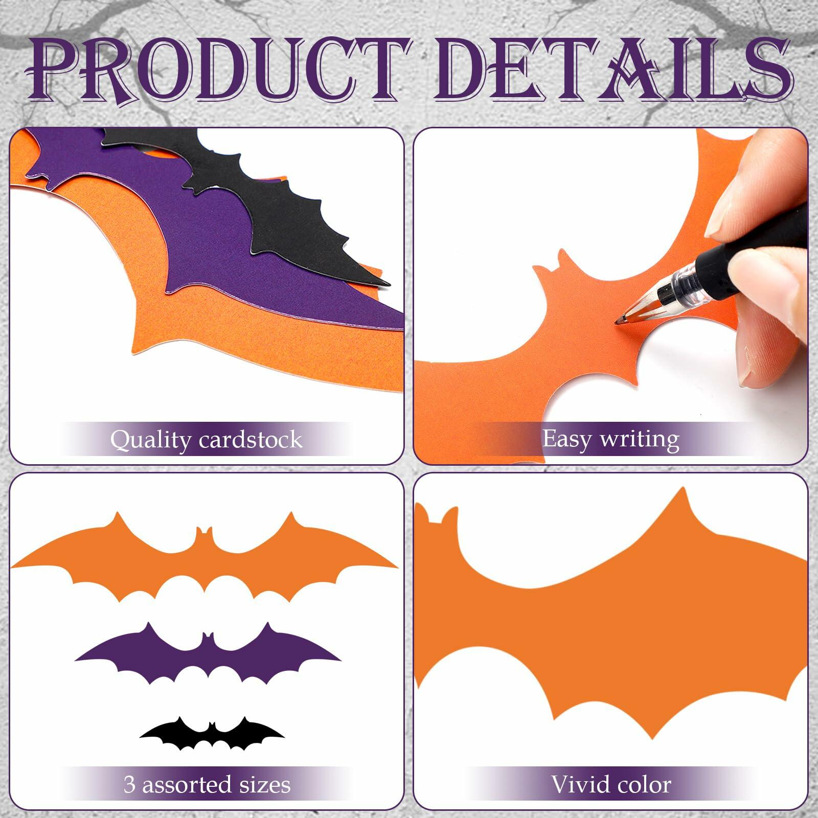 - Halloween Bat Cutouts: you will receive 36 scary Halloween bat accents in three colors, orange, purple, and black, and in 3 assorted sizes to meet your decoration needs; They pair perfectly with other Halloween decor like skulls, spider webs, spiders, pumpkins, and ghosts