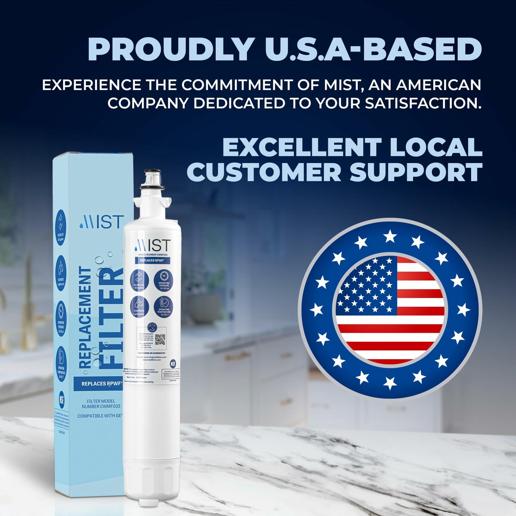 - [Perfectly Compatible] - Designed for a perfect fit, Mist utilizes advanced measurement technology to accurately replicate the original scale specifications using industrial automation machinery. This GE RPWF fridge water filter replacement is compatible with: RWF1063, RWF3600A, WSG-4, DWF-36, R-3600, MPF15350, OPFG3-RF300, BCF77. Please note: This replacement is NOT compatible with RPWFE!