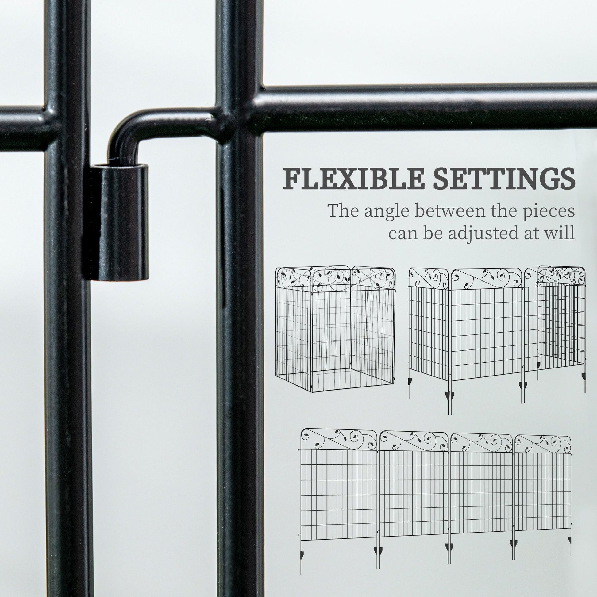 - Custom Metal Decorative Fence: Our metal outdoor fence can be combined into all sorts of angles and edged to suit your needs. Bend the four metal fence panels into shapes like an "I", "L", square, or wave. It's excellent as garden edging for flowers and as a border to another yard.