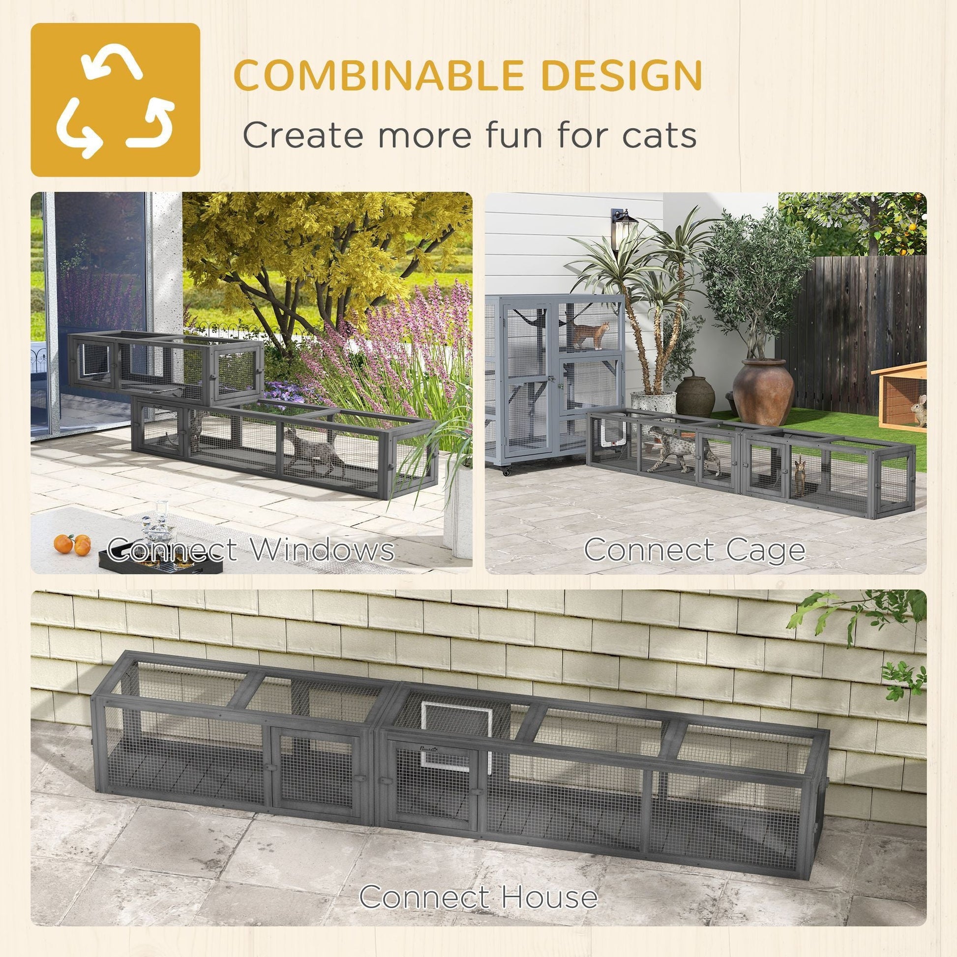 PawHut Cat Tunnel Outdoor, Wooden Cat Tube with Combinable Design, 8 Doors, 98" Cat Toys for Kitty, Puppy, Pet, House, Window, Cage, Dark Gray
