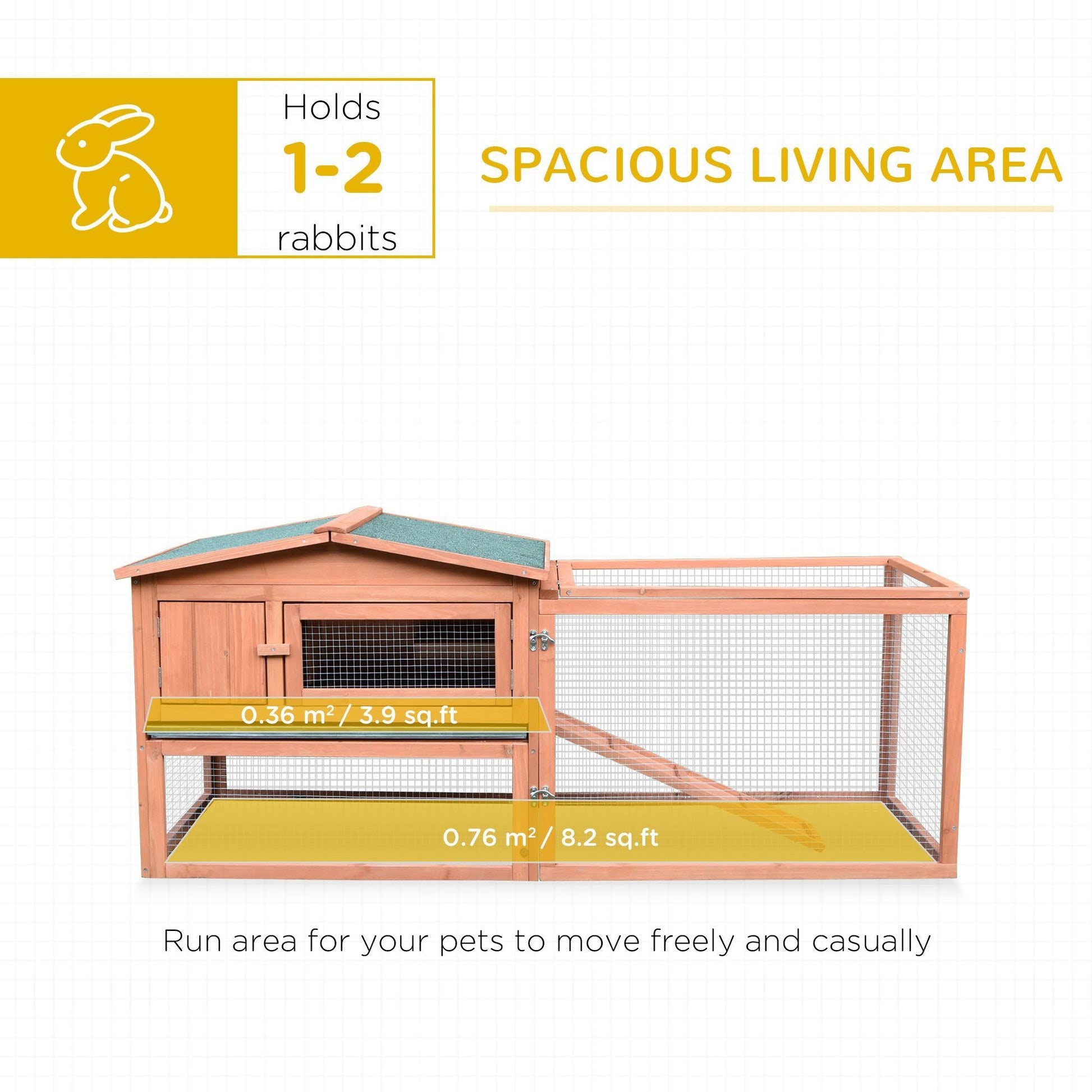 PawHut Rabbit Hutch 2-Story Bunny Cage Small Animal House with Slide Out Tray, Detachable Run, for Indoor Outdoor, 61.5" x 23" x 27", Natural