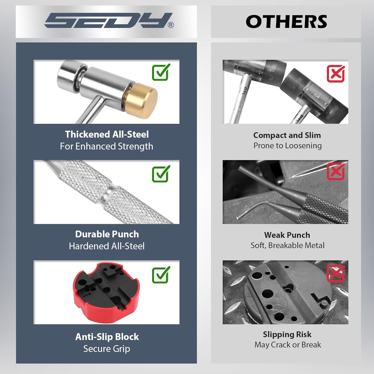 - NON-SLIP BENCH BLOCK - The included bench block is engineered with a special surface treatment to protect delicate surfaces from scratches. Equipped with a non-slip mat, it provides a stable base for all your punching needs, making it a reliable addition to any tool kit