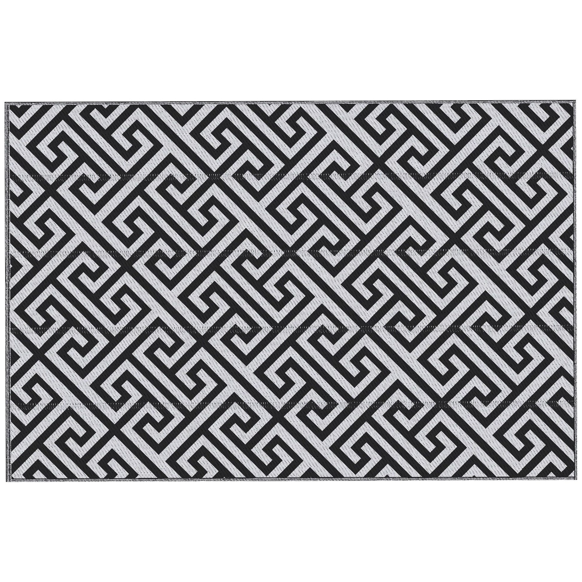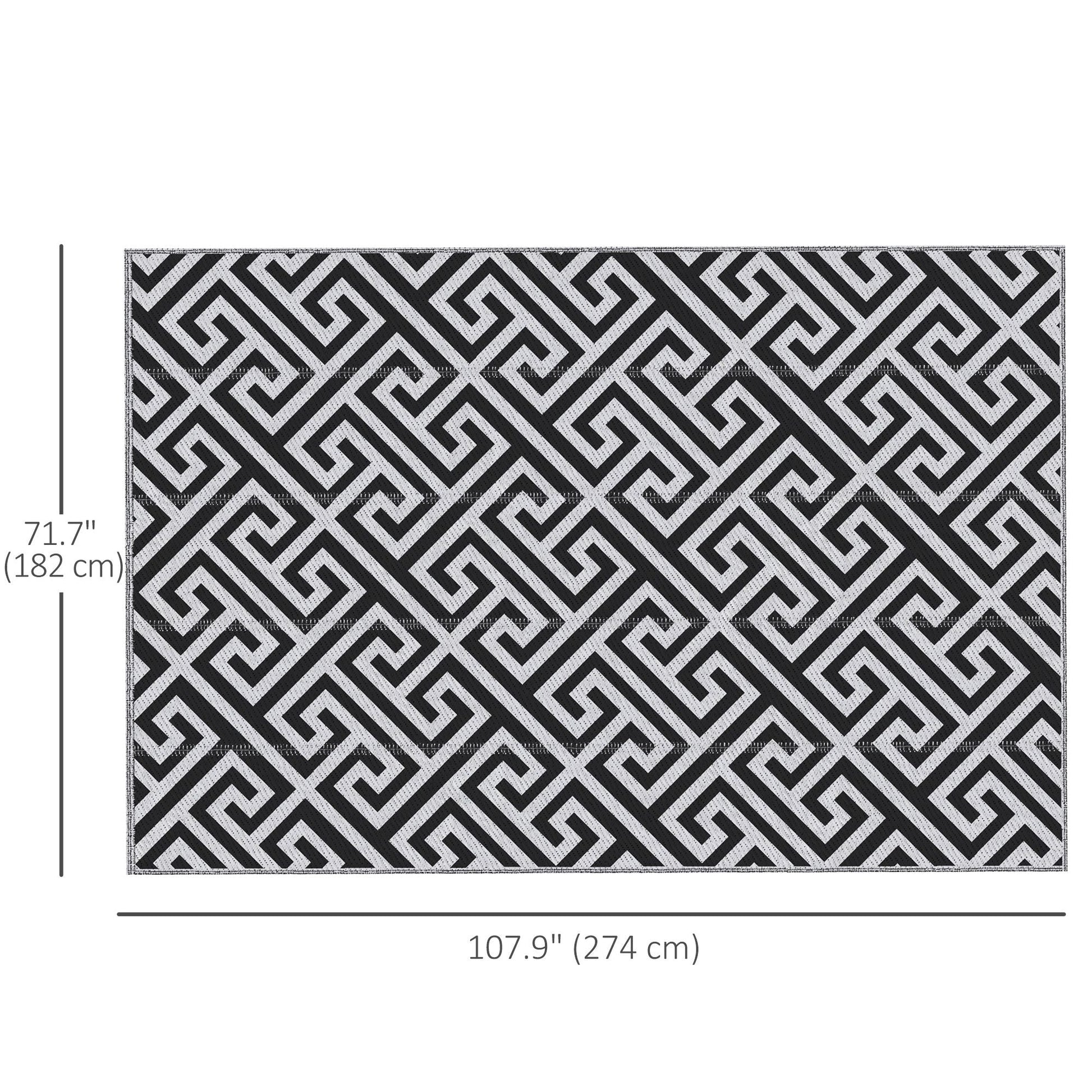 Reversible Outdoor RV Rug, Patio Floor Mat, 6' x 9' Plastic Straw Rug for Backyard, Deck, Beach, Camping, Black & White