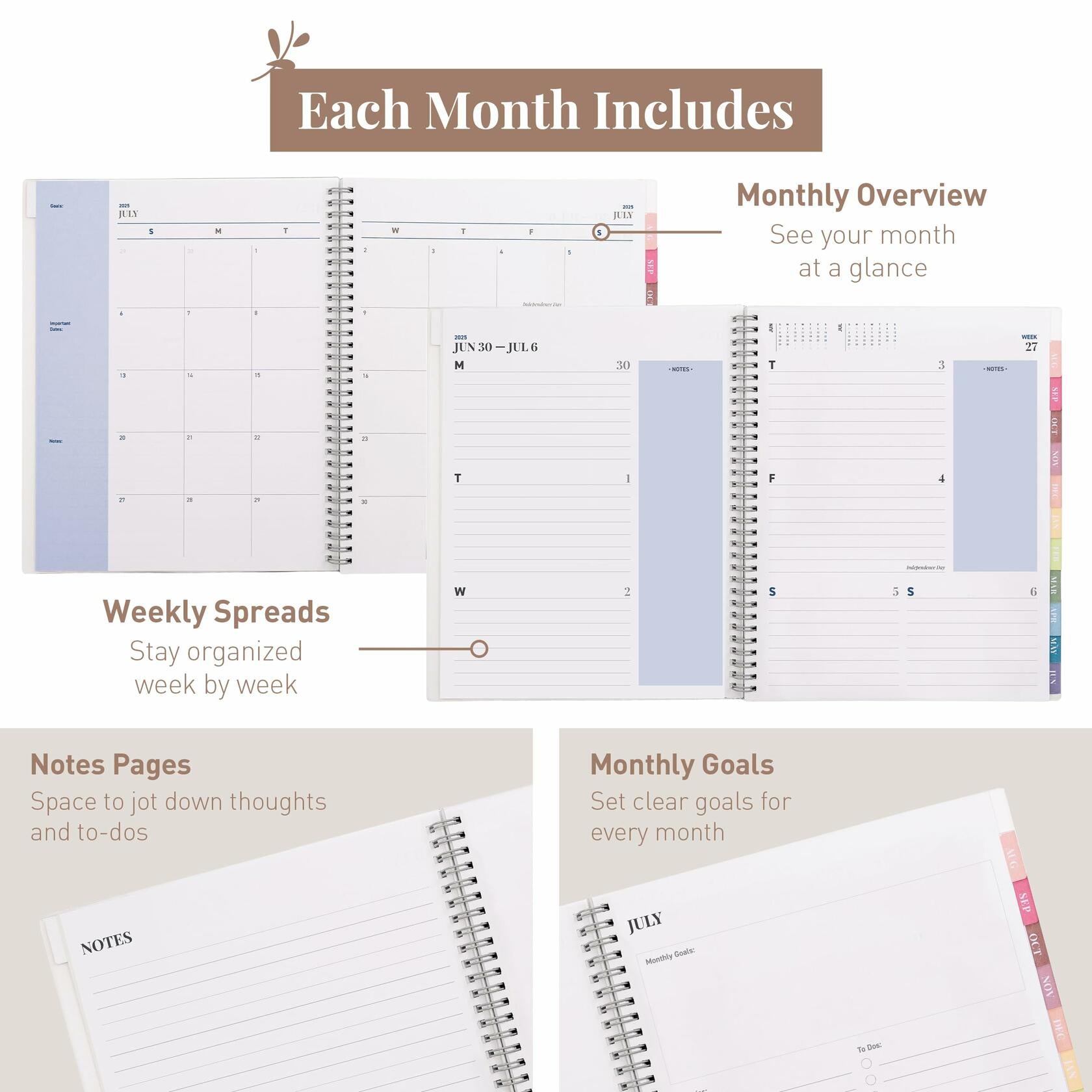 - PLAN SMARTER. STRESS LESS.: Start each day confident and in control with this powerful planner 2025-2026. Featuring new monthly tabs, two-page weekly spreads, and a flexible layout, this 2025/2026 monthly planner helps you track tasks at a glance—perfect for tackling busy schedules without feeling overwhelmed. A must-have calendar 2025 planner to stay organized.