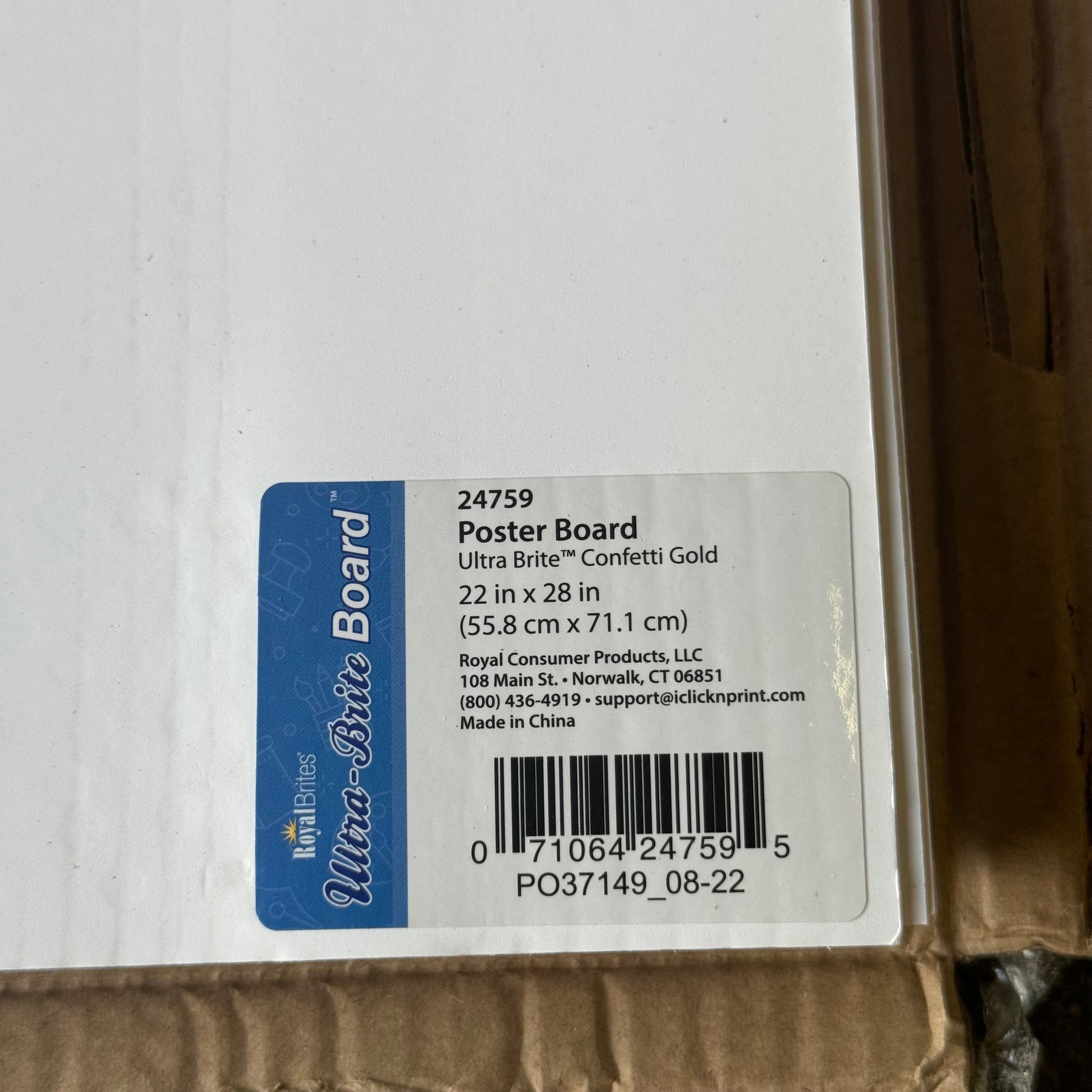 The ROYAL BRITES Ultra Brite Confetti Gold Poster Board is perfect for making bold, eye-catching displays. Whether you're crafting posters, signs, or creating art projects, this vibrant gold-colored board will add a touch of elegance and shine. Its high-quality construction makes it ideal for both professional and personal use, while the confetti gold finish offers a unique sparkle that stands out at any event or display.