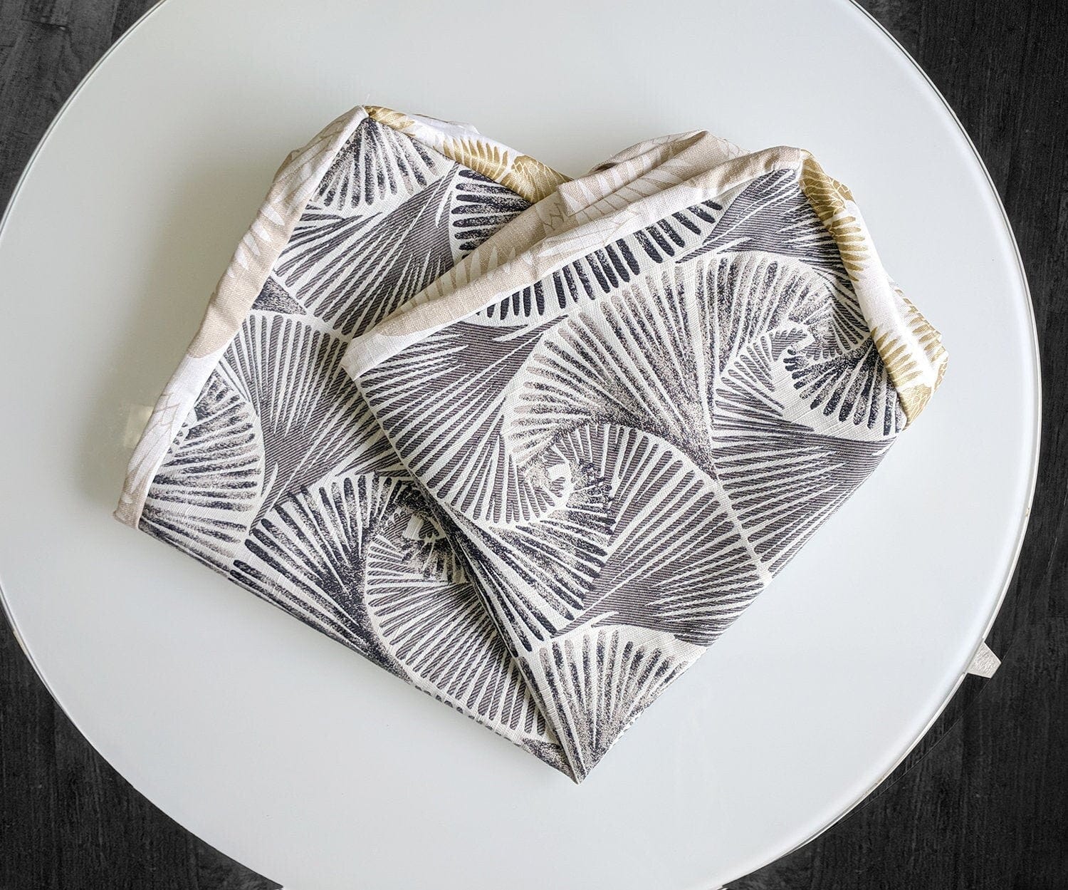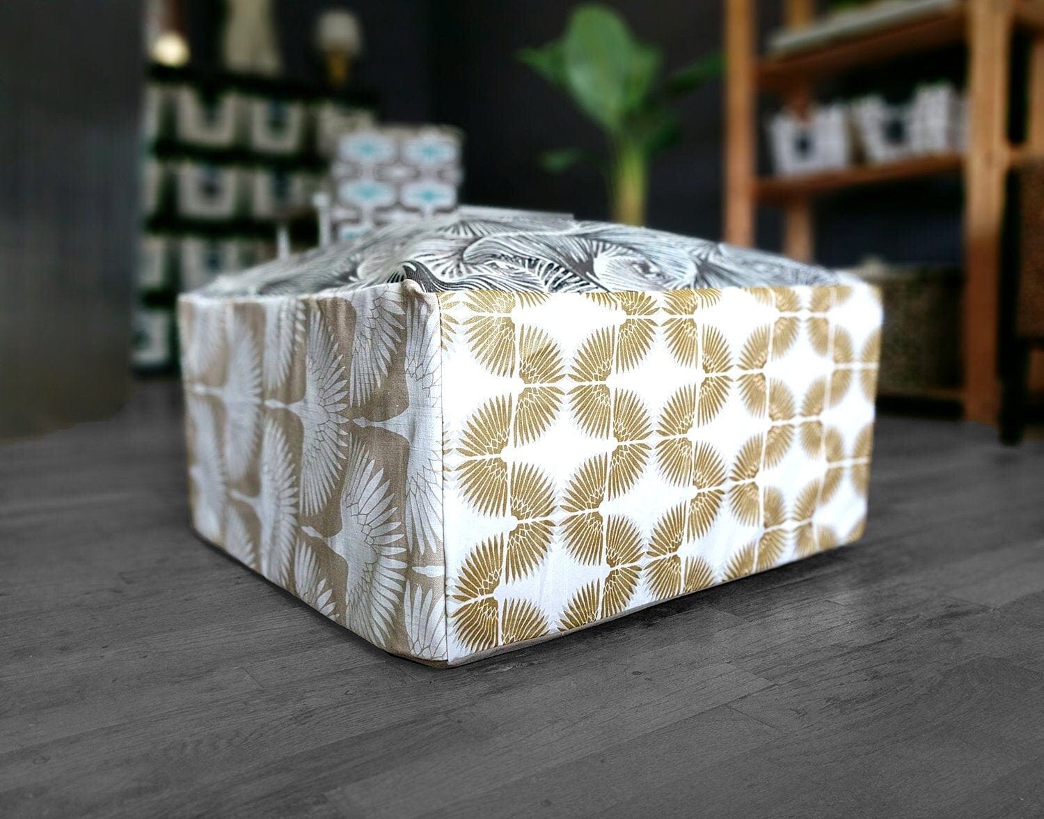 Beautiful ottoman cover in neutral tones - grays, white, metallic gold and beige! This unique bean bag pouf cover is perfect for extra seating or table. It features different, but complementing prints on all sides.