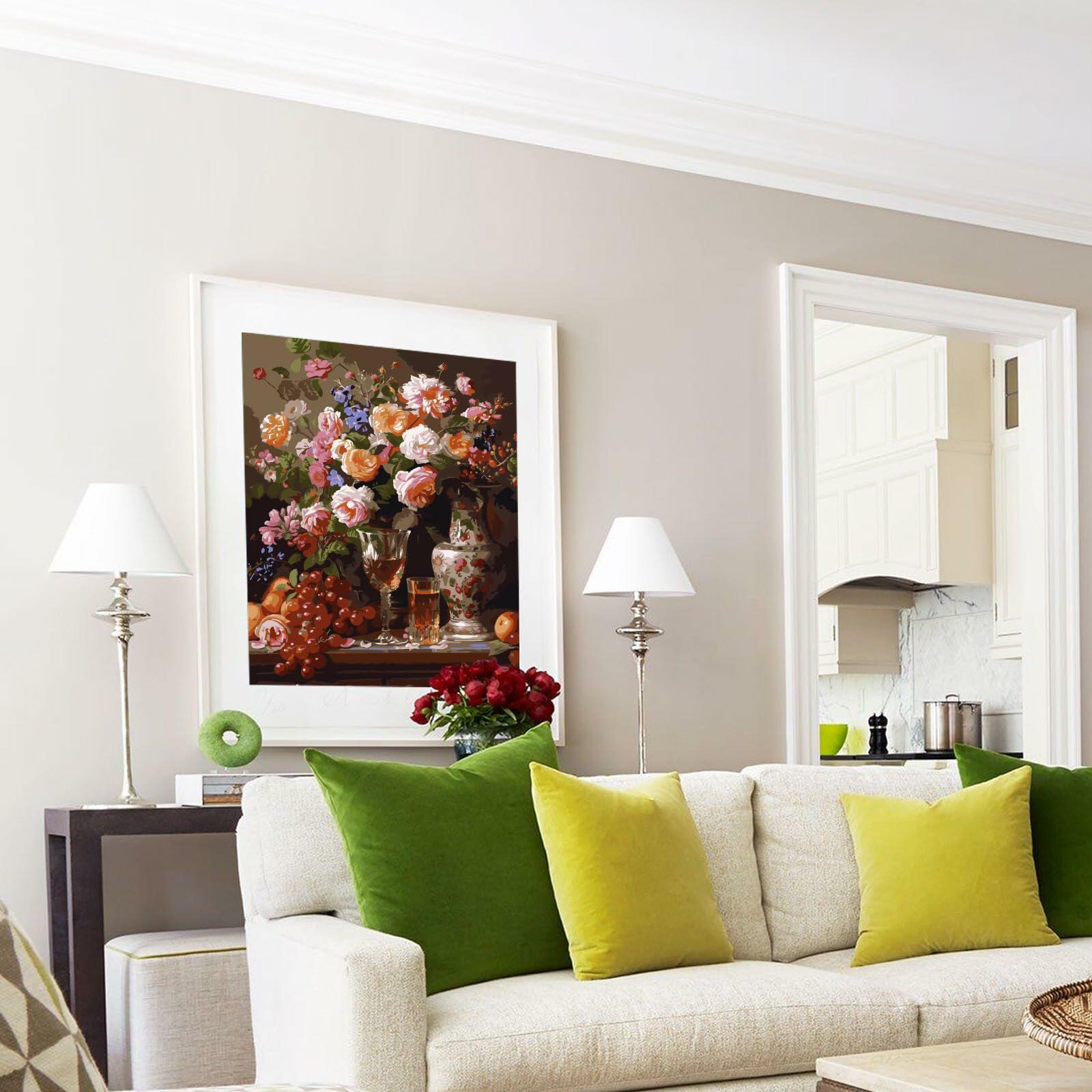 - 【ENVIRONMENTAL MATERIAL】 The adult paint by numbers adopts high-quality and safe acrylic paint and pure cotton canvas. The acrylic paint is easy to color and prevents fading, and the canvas has good water absorption and breath ability and is easy to store for a long time. Our paint by number pigment is acrylic paint,can be directly colored,no need to add water for blending.When you accidentally use the wrong color, just cover it with the correct color paint.