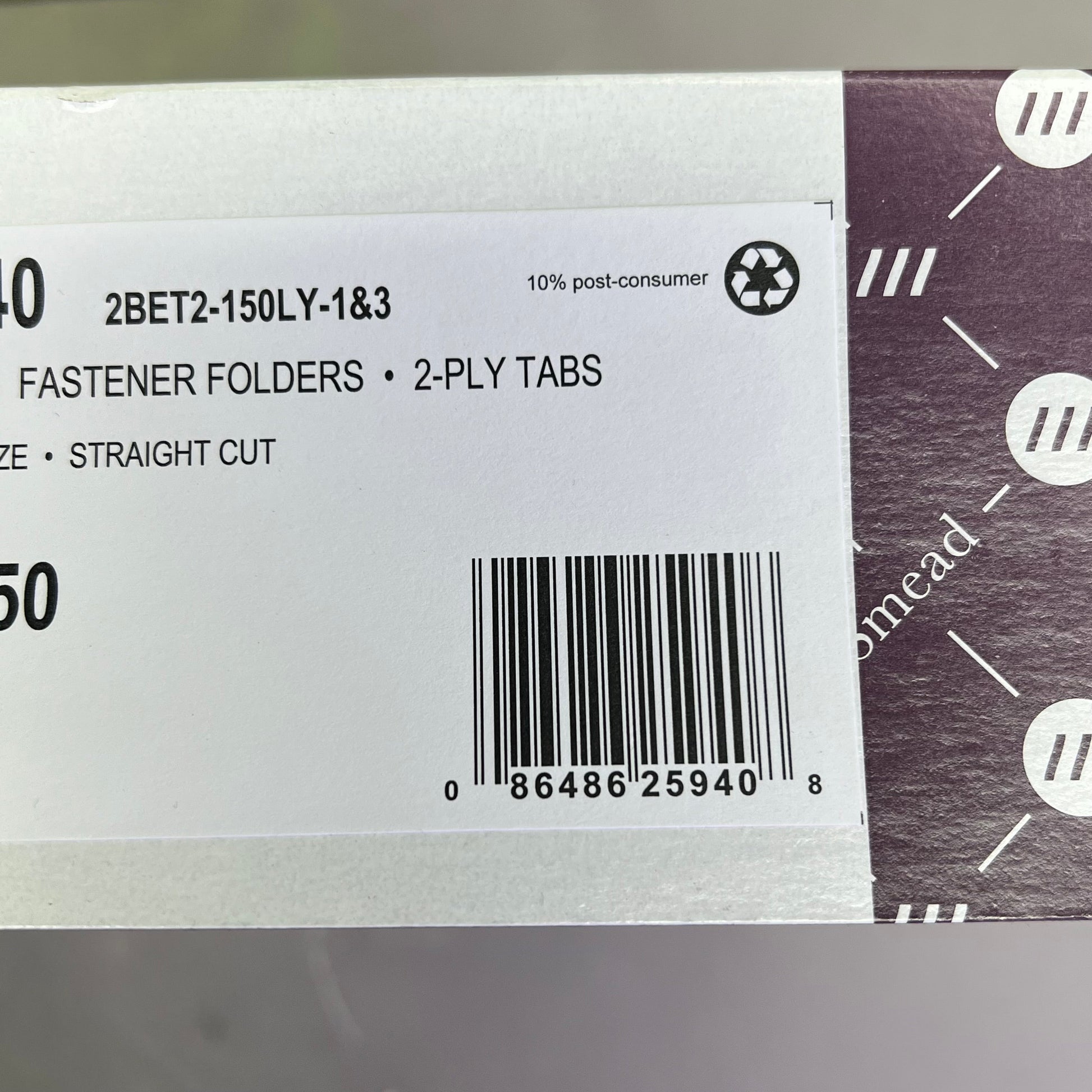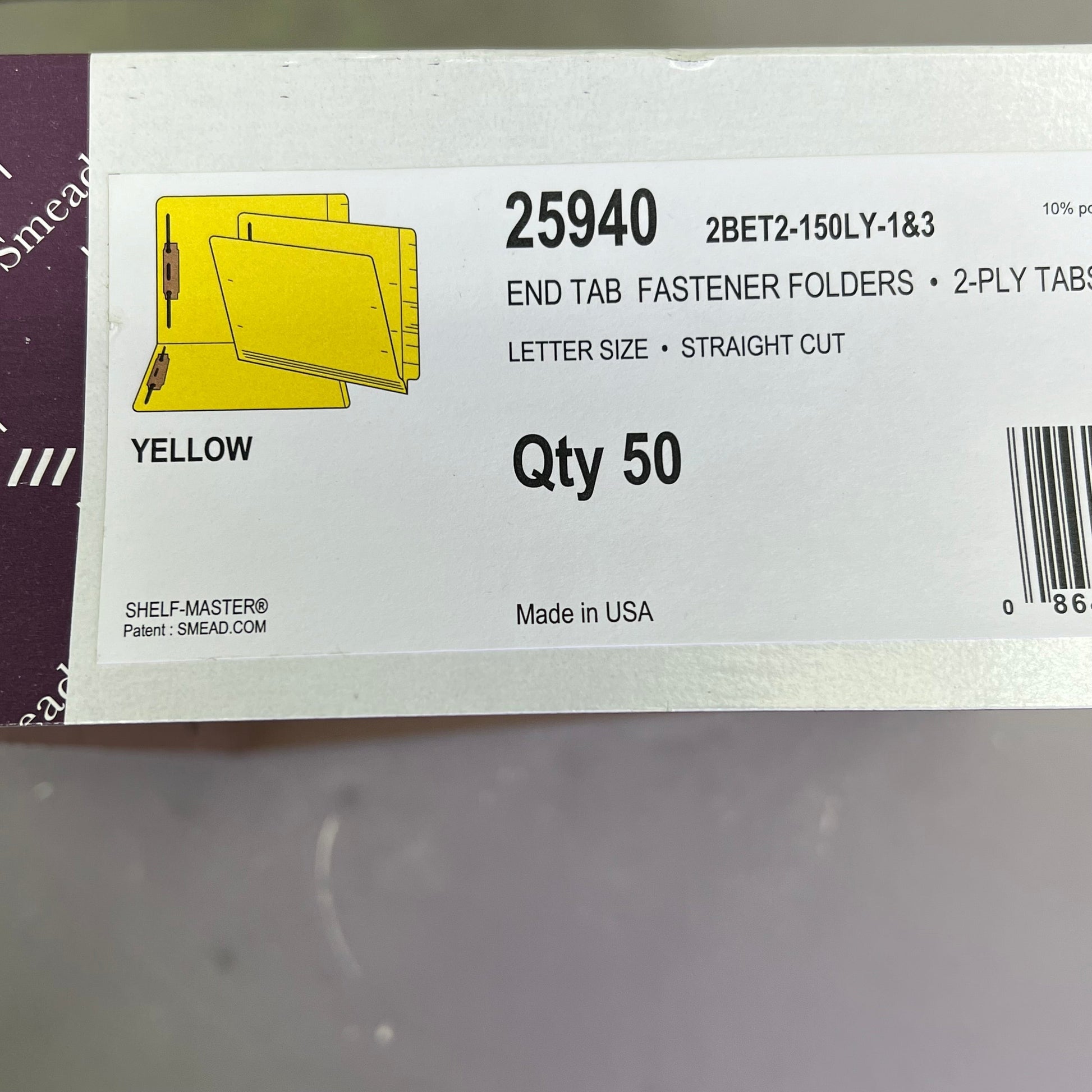 SMEAD (50 PACK) End-Tab Folders w/ Fasteners Straight Cut Letter Sz Yellow 25940