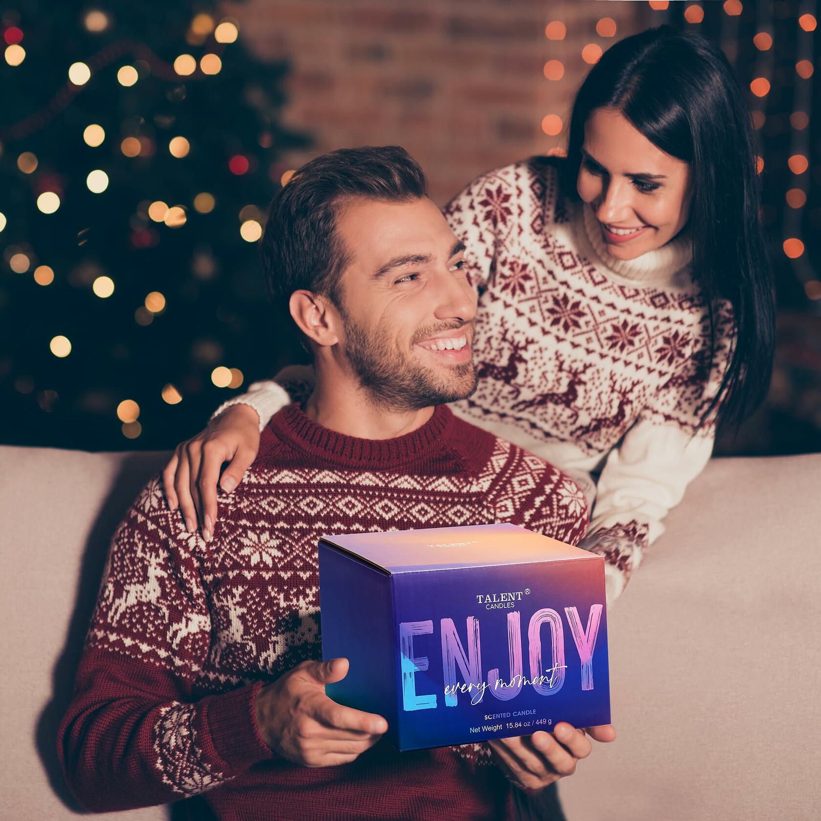 - Stylish Gift for the Modern Enthusiast: Looking for the perfect gift for a young and fashion-conscious individual? Our ENJOY scented candles make a memorable present. The luxurious aesthetic, captivating fragrances, and extended burn time make them a thoughtful and impressive gift choice, reflecting both style and functionality. Whether for a birthday, housewarming, or special occasion, these candles are sure to delight and enhance the recipient's space.
