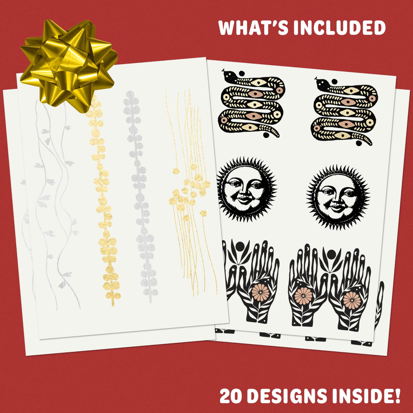 Tattly Metallic Festival Temporary Tattoos 20 Pieces Skin-Safe Vegan Ink