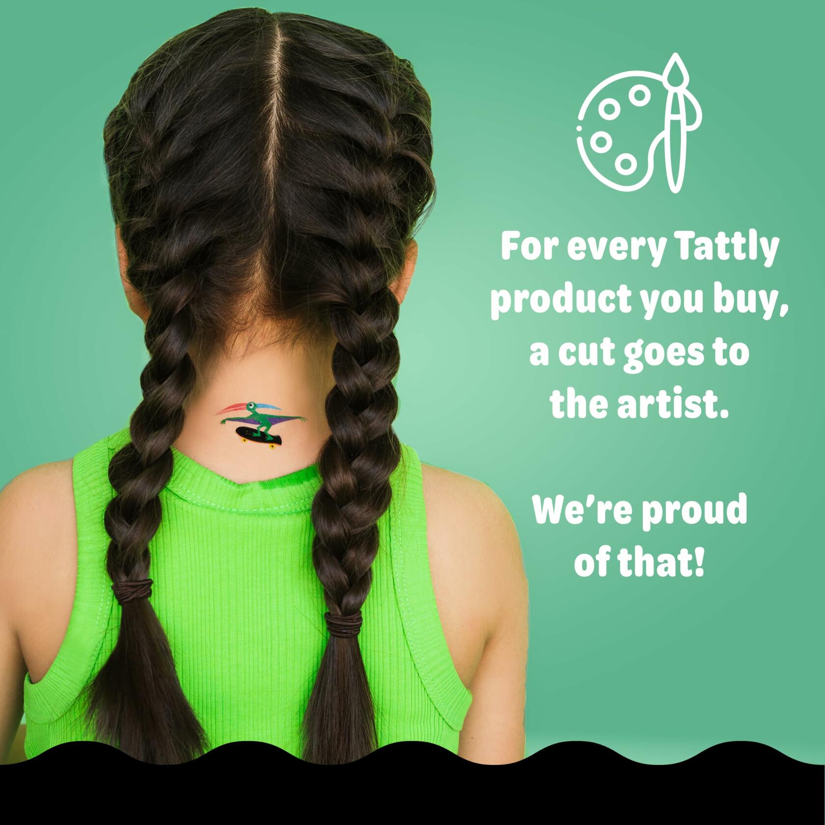 - INK-CREDIBLE QUALITY: We're not just regular temporary tattoos, we're the most excellent temporary tattoos. Every piece of Tattly ink is made in the US of A with domestic and imported materials. Our vibrant inks are both cruelty-free and vegan that deliver realistic looking tattoos with rich colors and water-resistant durability. Oh and one more thing? Our long lasting temporary tattoos are safety tested, so you can use them on the whole family without worry.