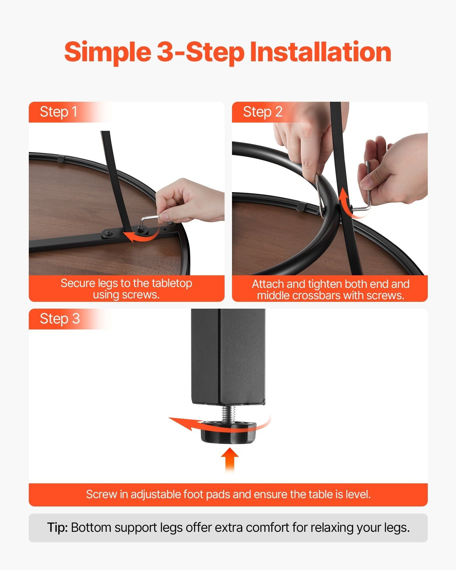 4.Easy Assembly: The counter height dining table comes with a detailed instruction manual for a quick and easy 3-step assembly. All necessary screws and accessories are included, so no additional parts are needed. It also features leveling feet for stability on uneven ground.