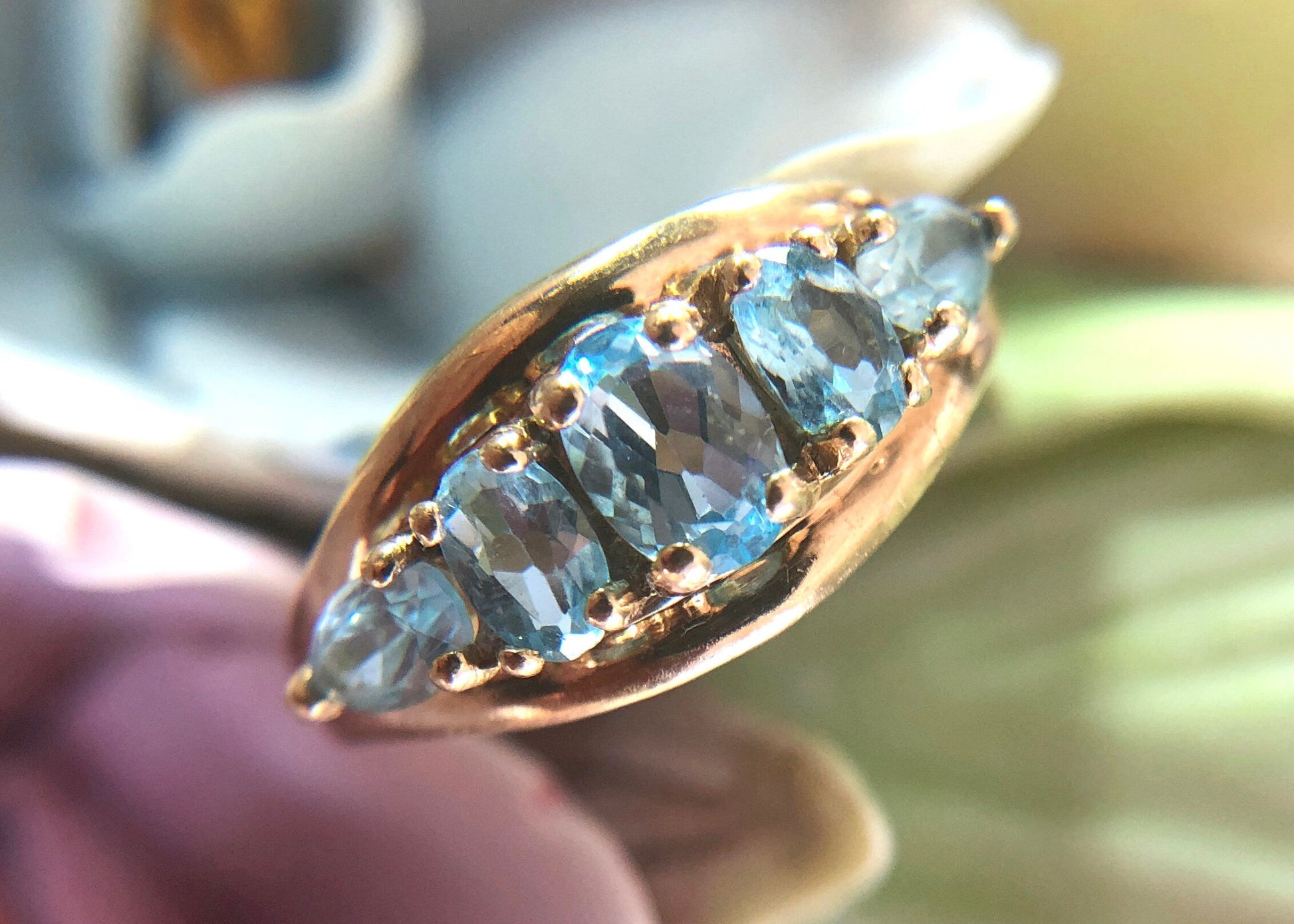 Vintage 10k Gold Ring with 5 Blue Topaz Stones