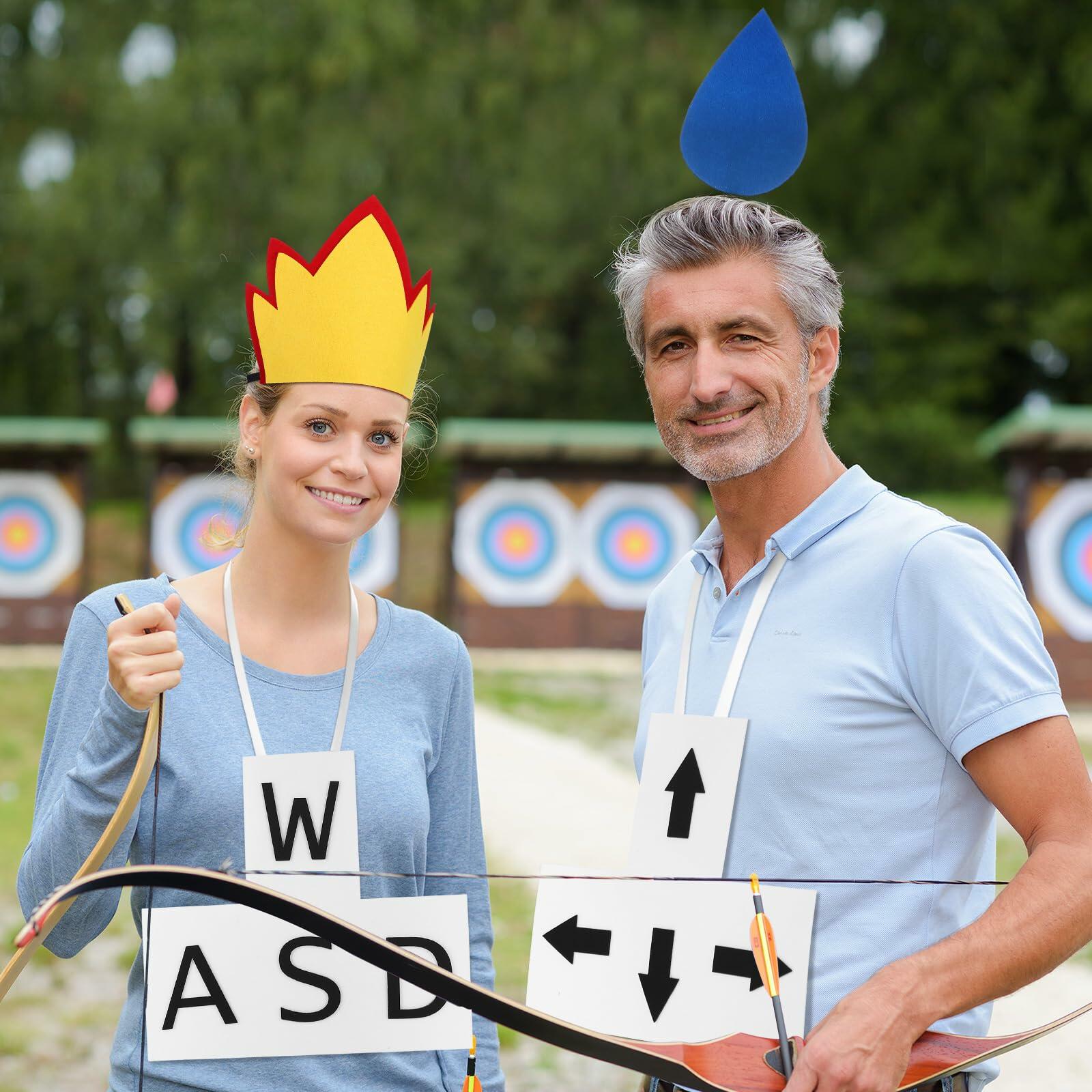 - Complete Set for a Dynamic Costume Ensemble: our package includes a water drop headband, a flame headband, an arrow tag, and a WASD English letter tag; This comprehensive set allows you to share with friends or family, creating a dynamic flame and ice water drop costumes ensemble for group festivities
