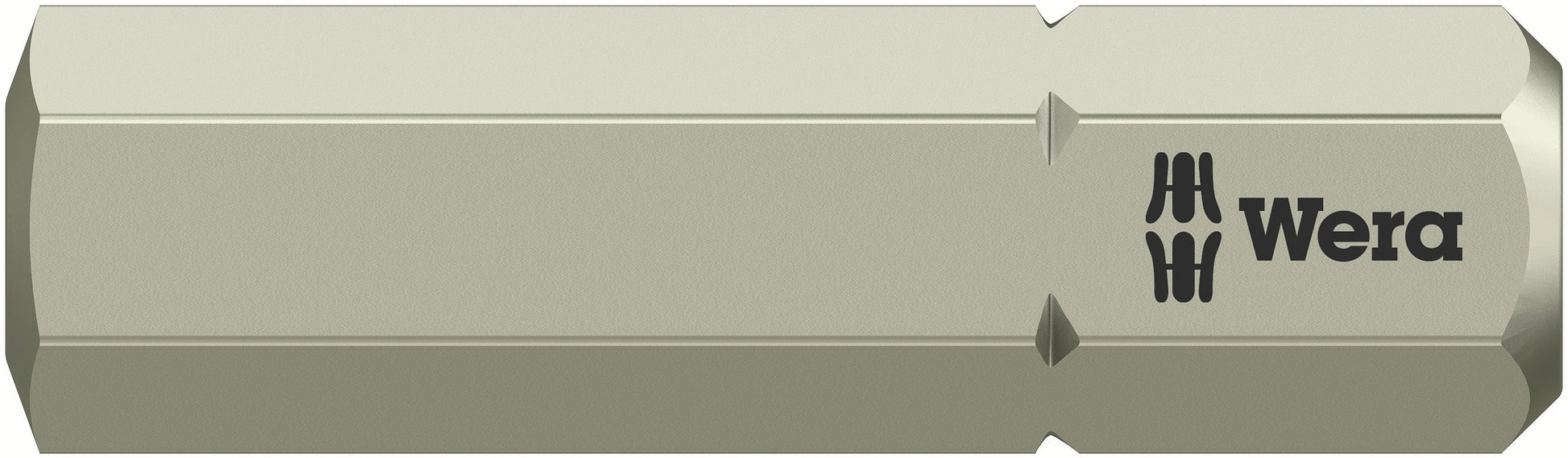 High quality bits out of stainless steel for hexagon socket screws. Wera stainless are made out of stainless steel which prevents the formation of unsightly extraneous rust. The Hex-Plus profile offers a greater contact surface in the head of the screw. The notching effect is therefore reduced to a minimum and damage to the screw head more or less eliminated. Come with Torsion zone: Torsion bits take-up torque peaks and absorb them in the Torsion zone. This prevents premature wear and extends the service life of the bit. ¼" hexagon, suitable for holders as per DIN ISO 1173-D 6.3.