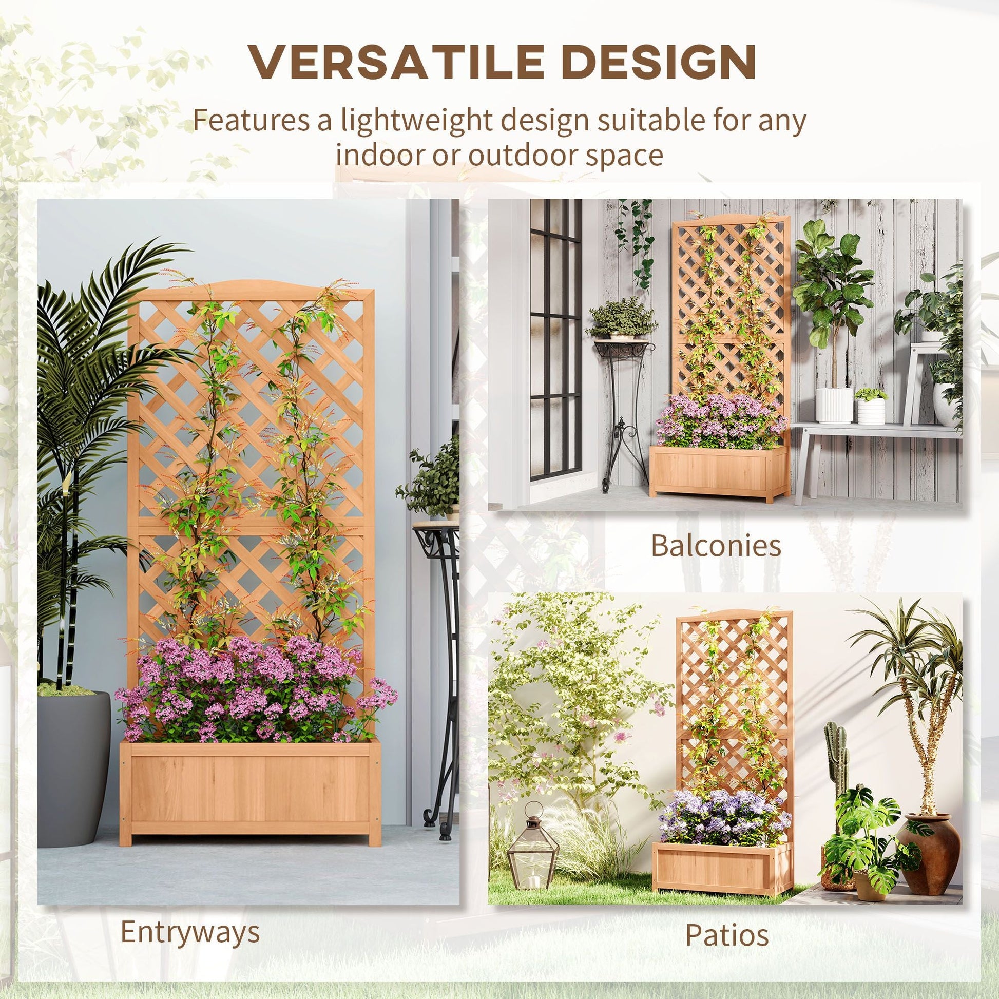 Wood Planter with Trellis for Vine Climbing, Raised Garden Bed to Grow Vegetables for Backyard, 30" x 14" x 67", Brown