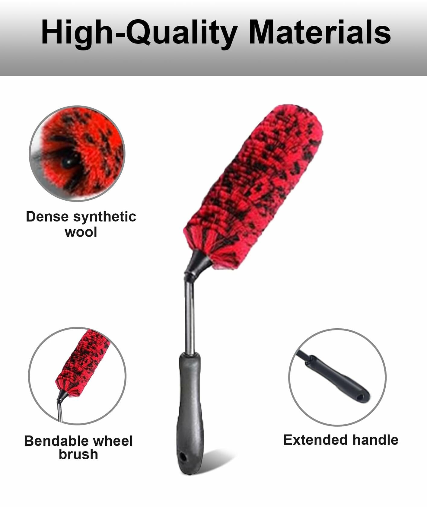 - 🚘【 High-quality Materials 】The wheel brush is made of soft and thick synthetic wool. The soft synthetic fiber will not harm your car when cleaning, and can hold the cleaning foam well, which can quickly and easily remove dirt and dust from wheels and other narrow places, ensuring a thorough cleaning without harming the surface.